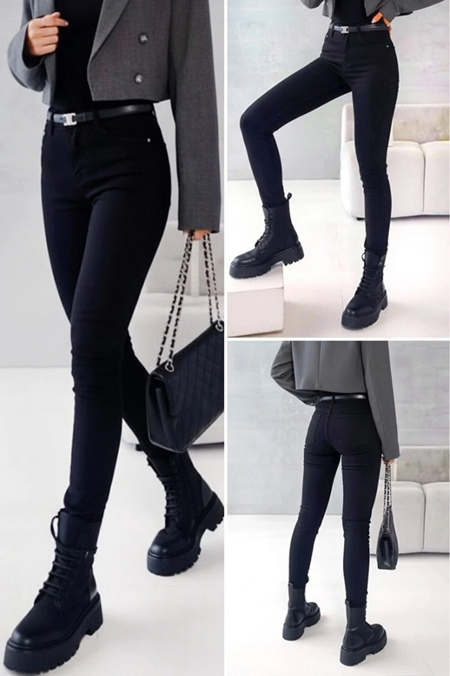 Kadın Yüksek Bel Cepli Kemersiz Kot Pantolon
