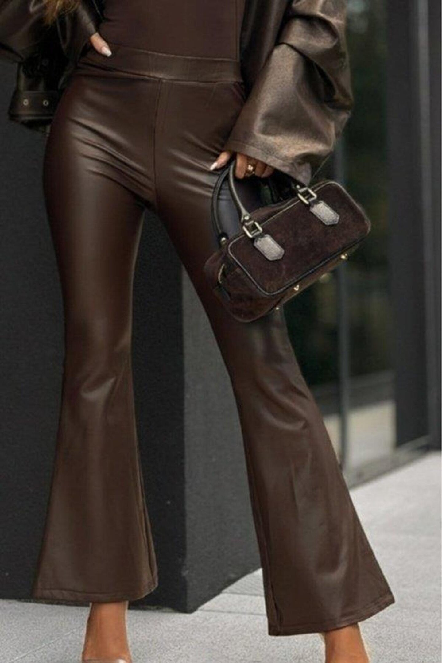 Kadın Yüksek Bel İspanyol Paçalı Deri Pantolon