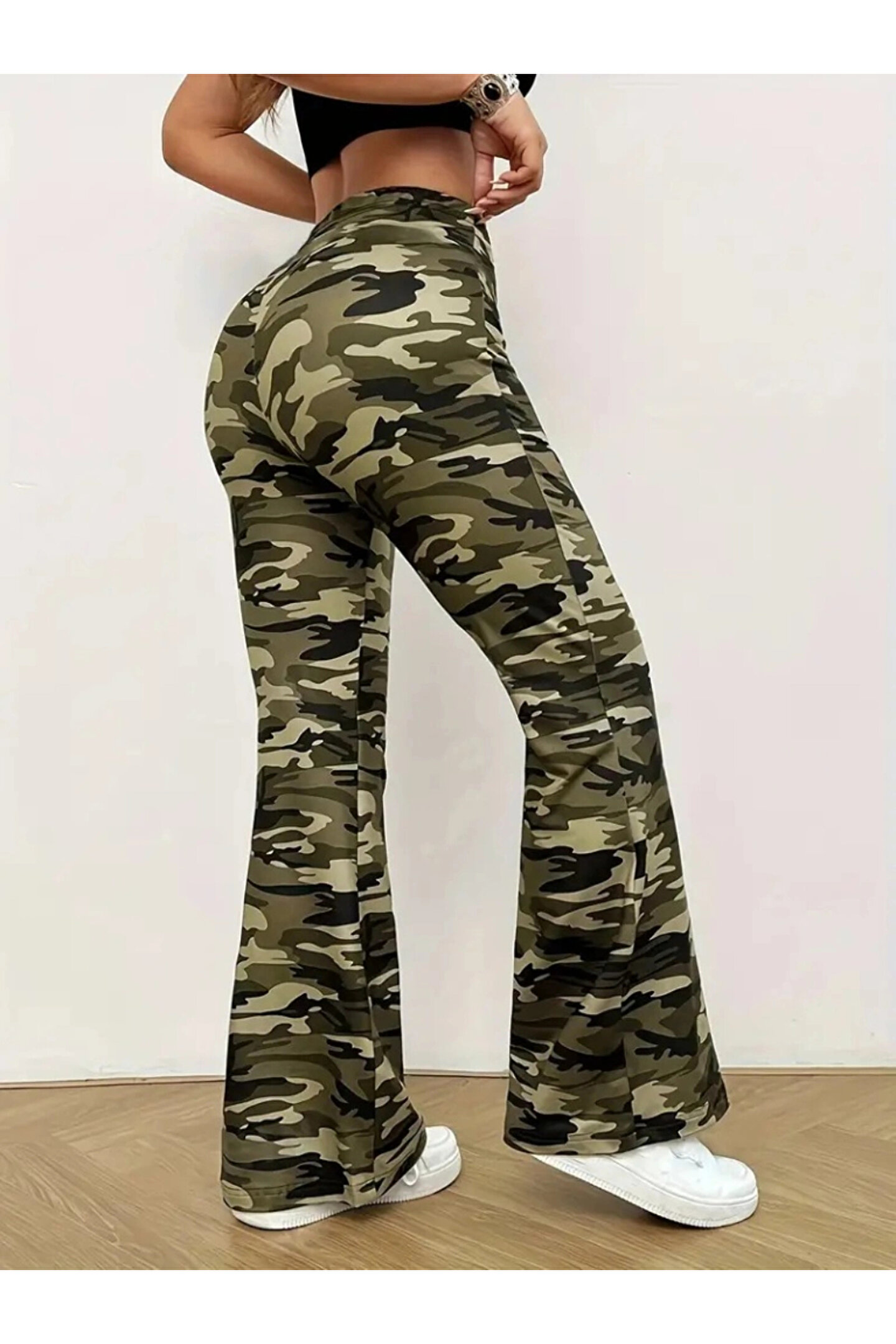 Kadın Yüksek Bel Kamuflaj Desenli Dalgıç Tayt