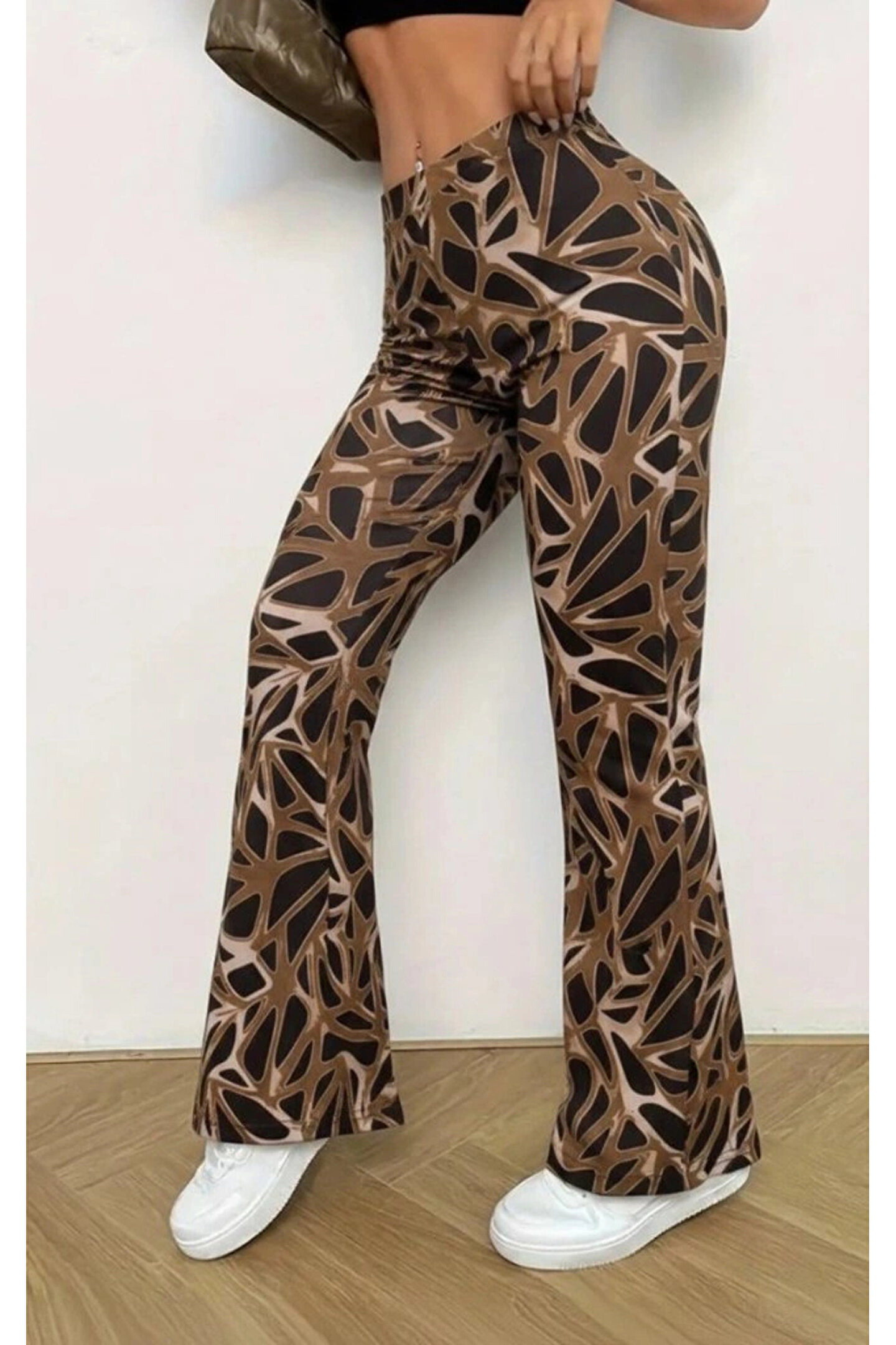 Kadın Yüksek Bel Kamuflaj Desenli Dalgıç Tayt