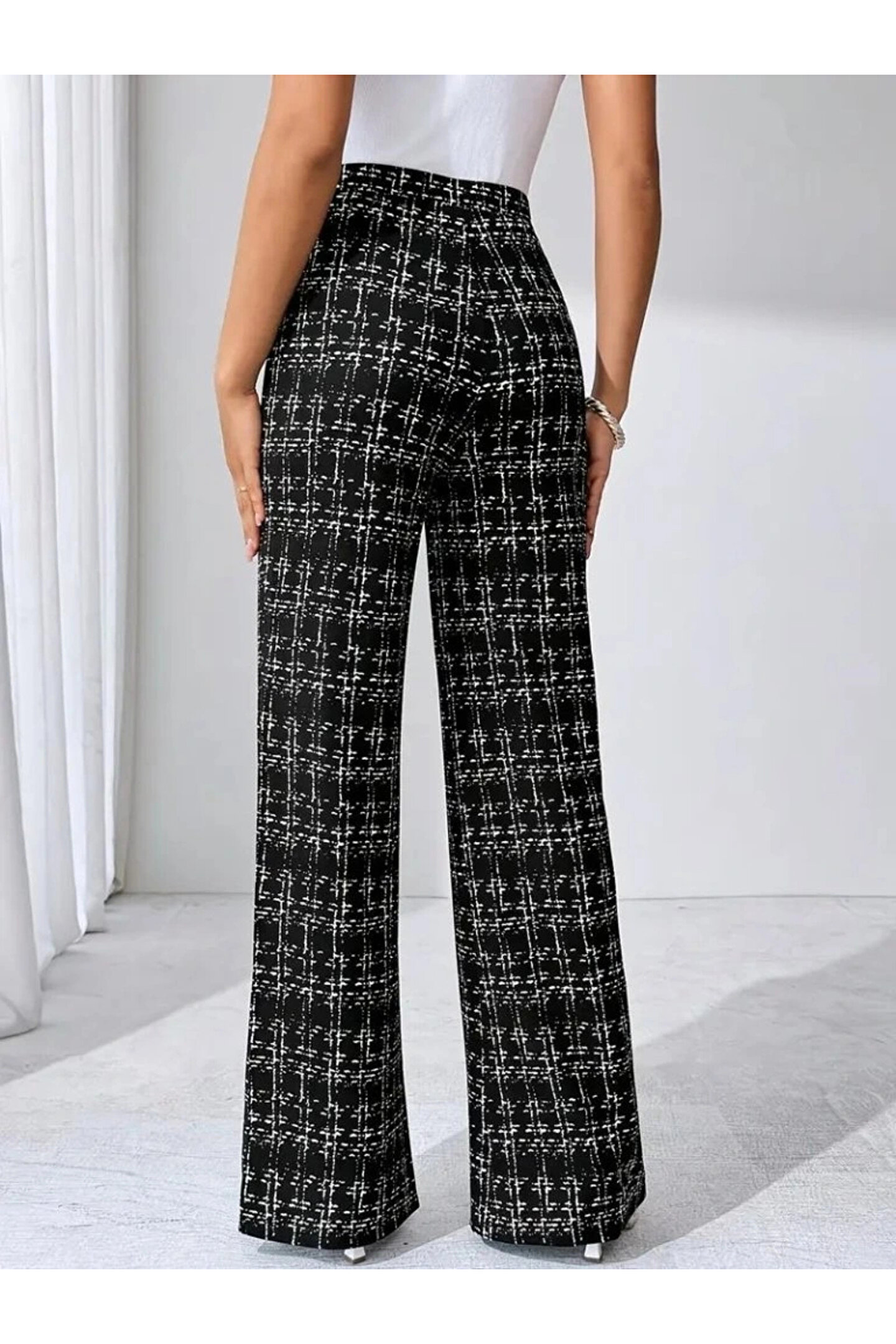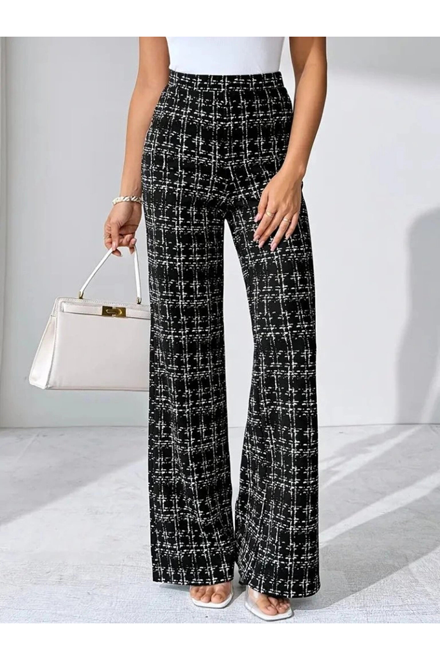 Kadın Yüksek Bel Paçaya Doğru Geniş Dokuma Pantolon