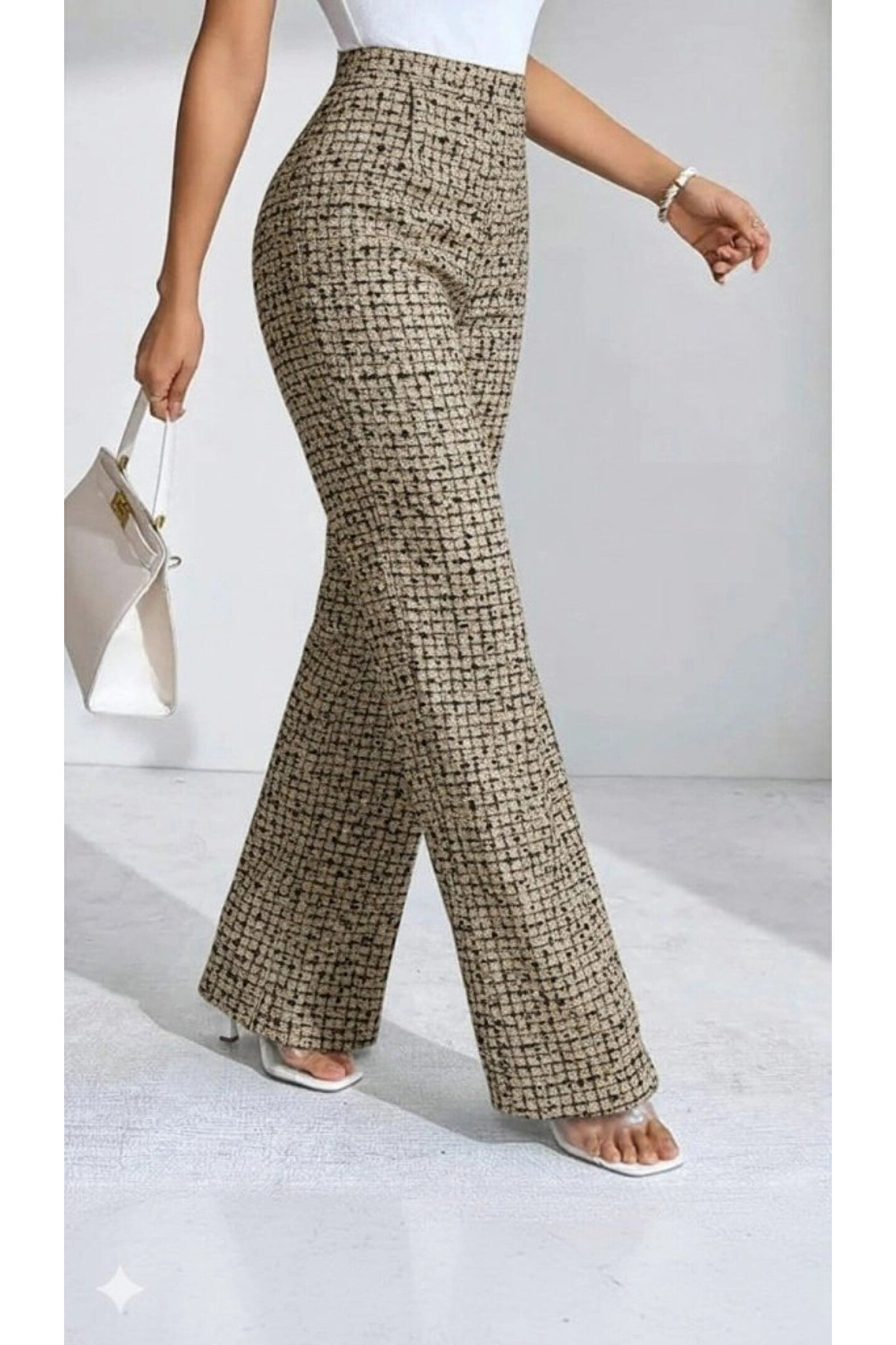 Kadın Yüksek Bel Paçaya Doğru Geniş Dokuma Pantolon
