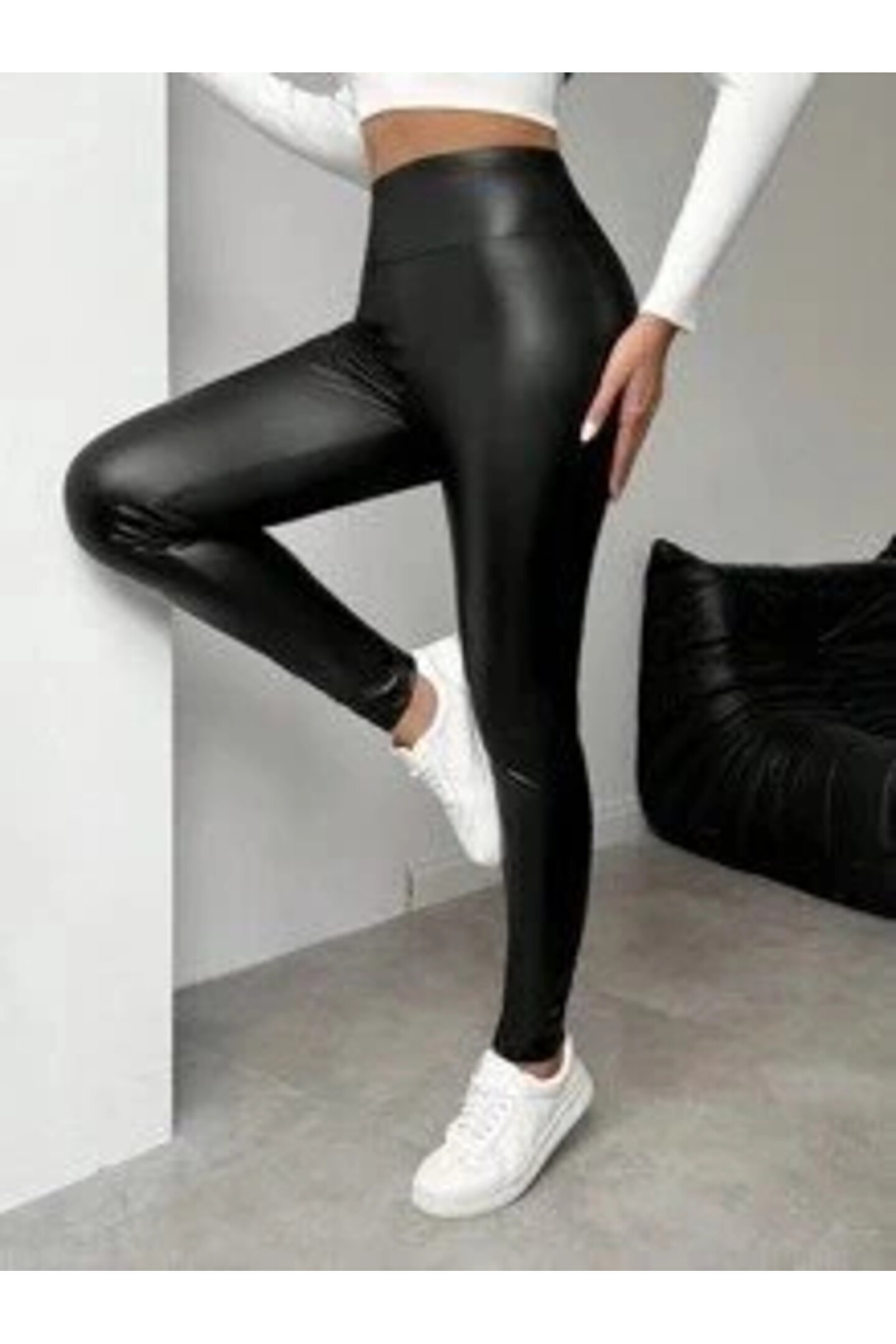 Kadın Yüksek Bel şardonlu Parlak Deri Tayt