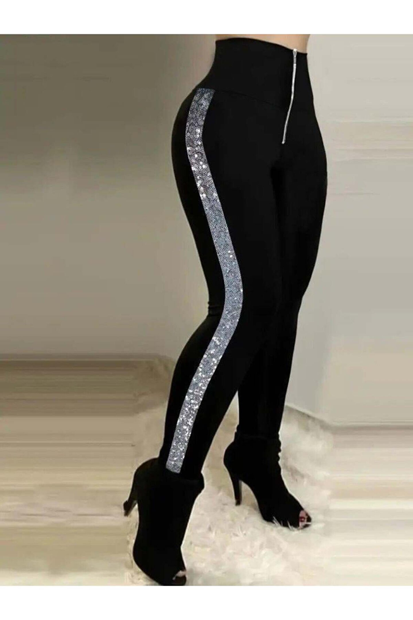 Kadın Yüksek Bel Yan şerit Detaylı Dalgıç Tayt