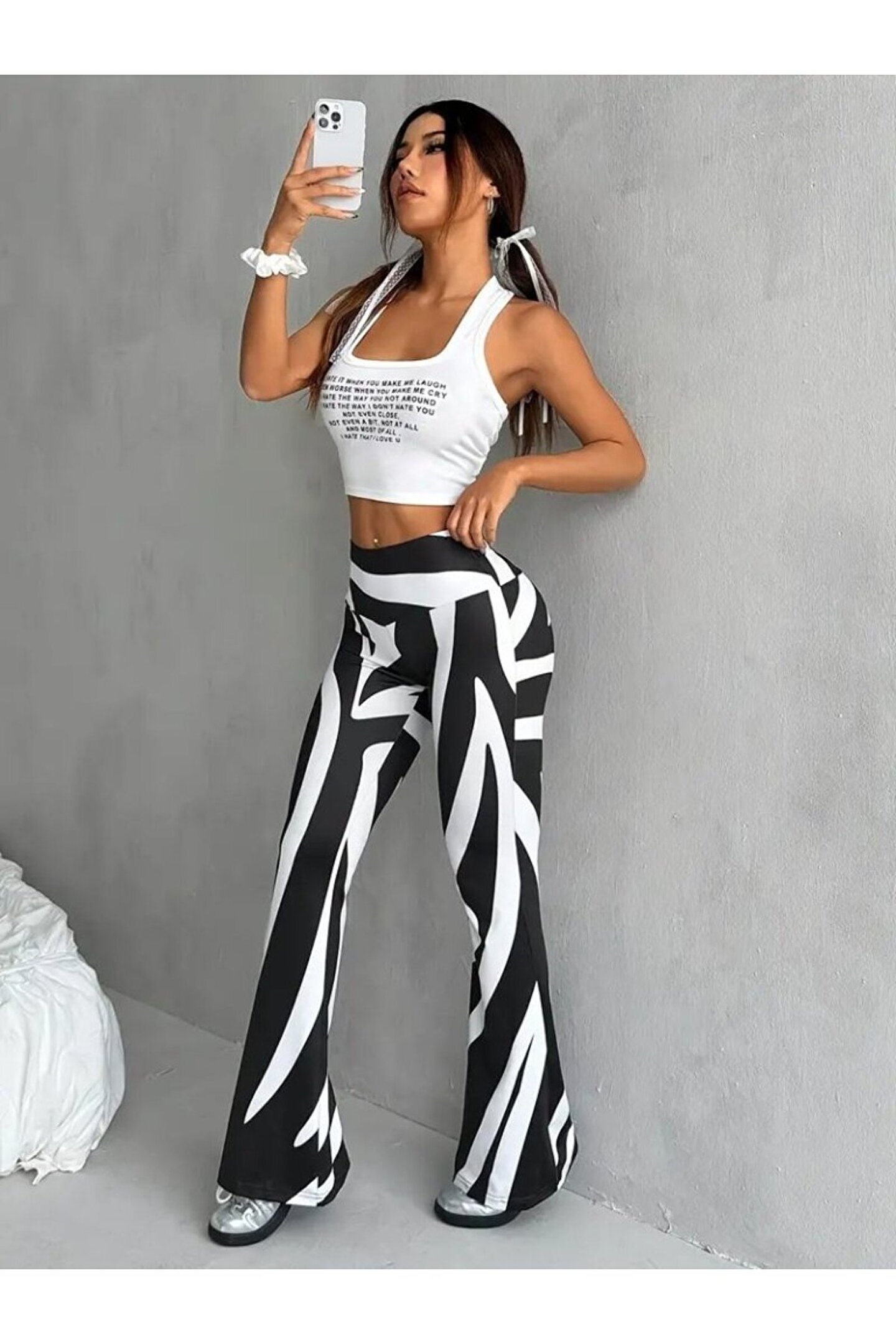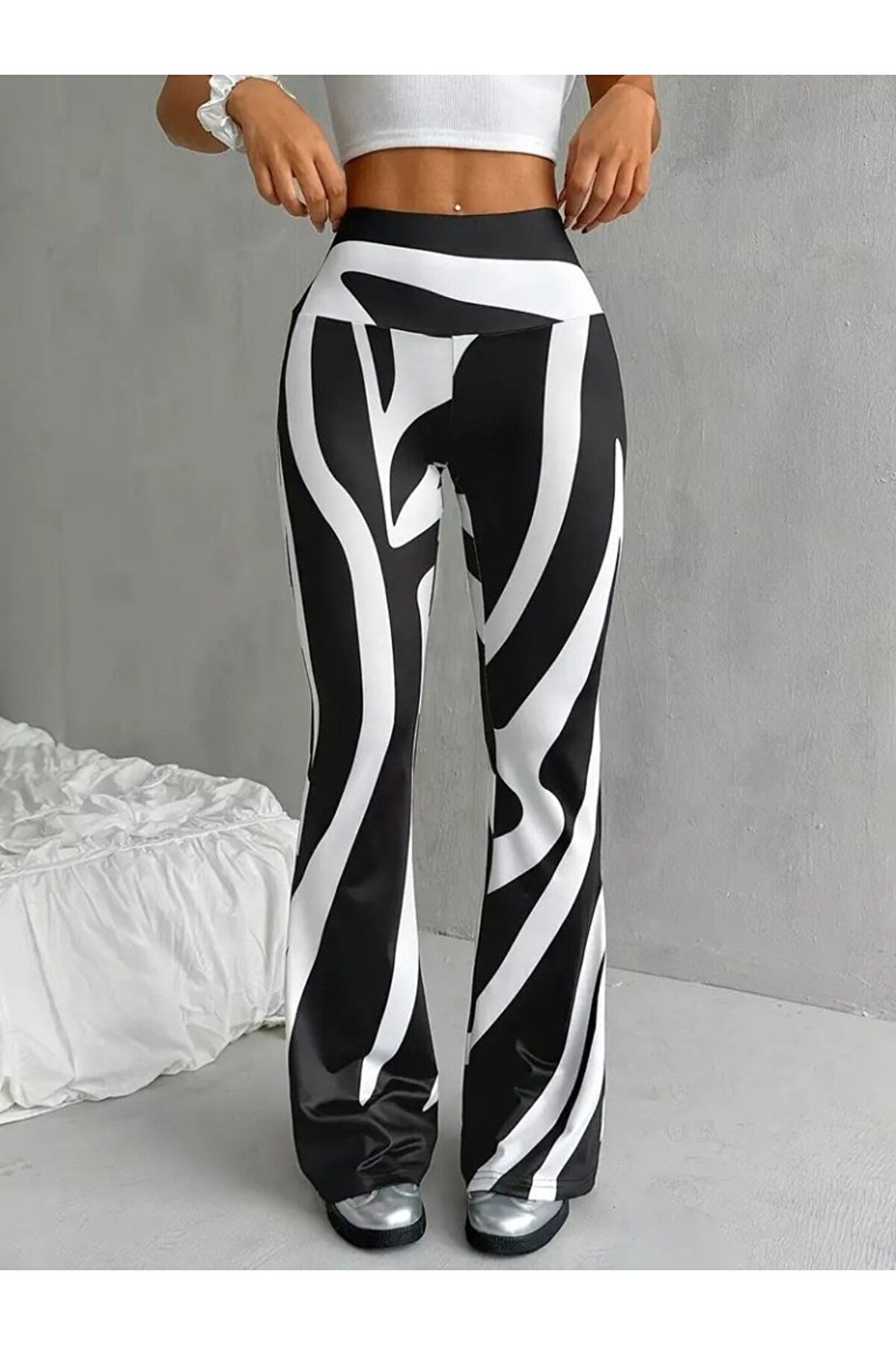 Silerra Kadın Yüksek Bel Zebra Desenli Dalgıç Tayt