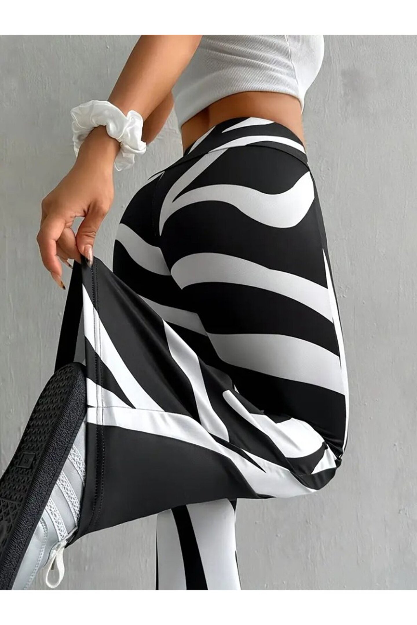 Kadın Yüksek Bel Zebra Desenli Dalgıç Tayt