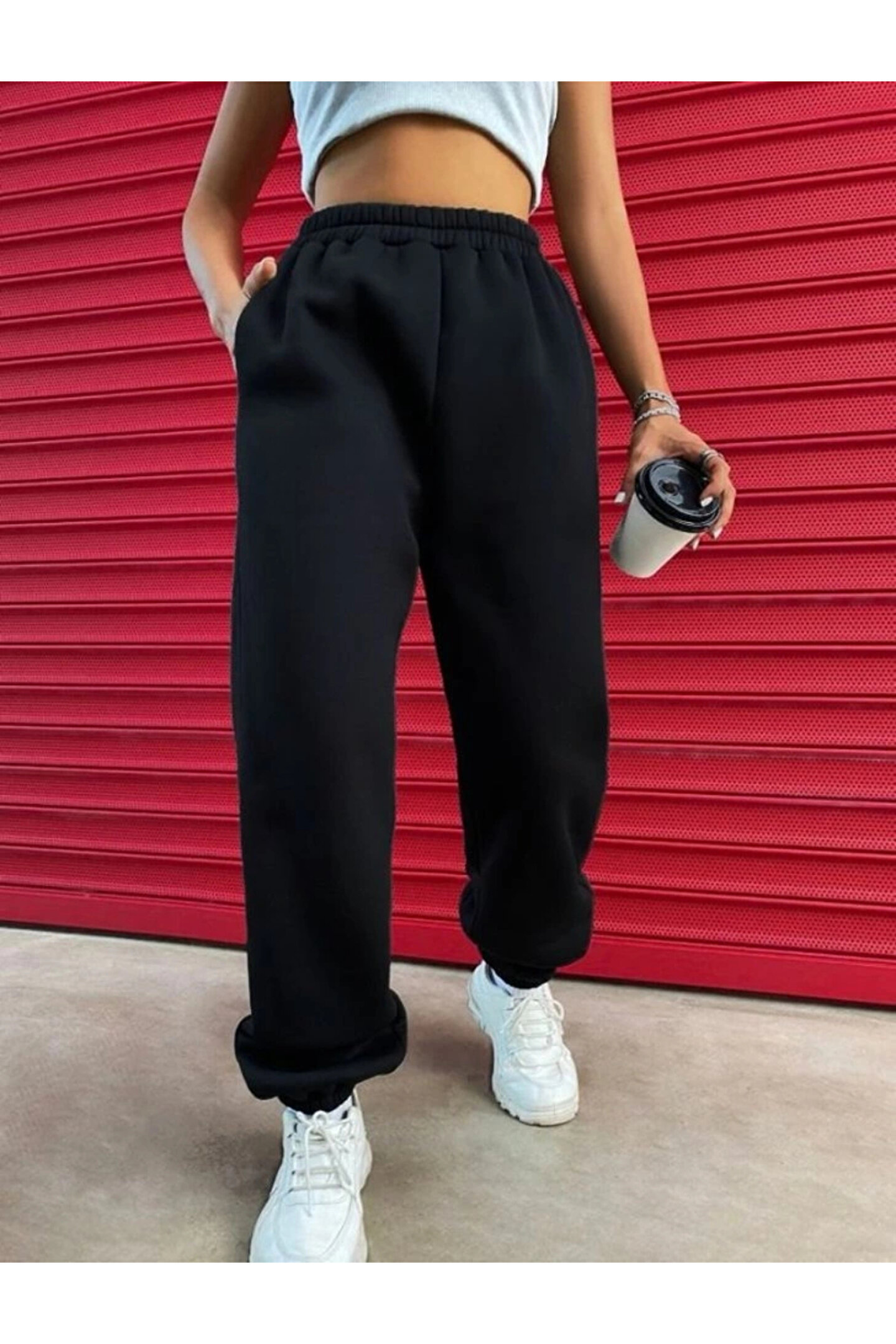 Kadın Yüksek Beli Lastikli Içi Polar 3 Iplik Eşofman Altı