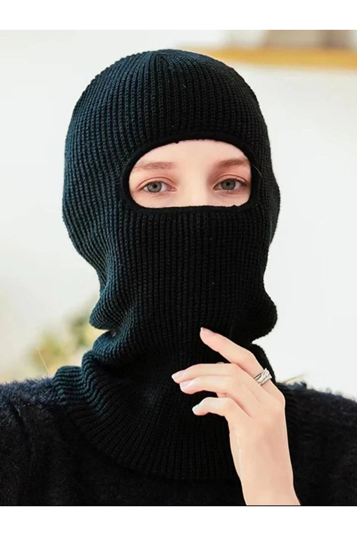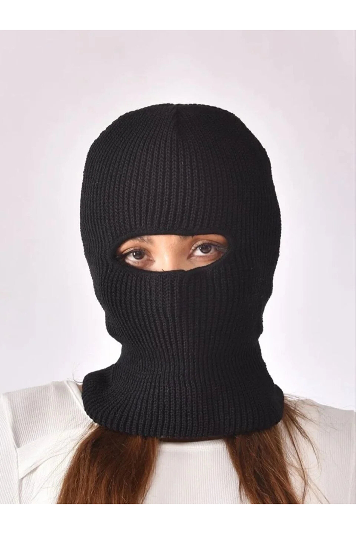 Silerra Kışlık Kar Maske Dokuma Triko Bere - Siyah
