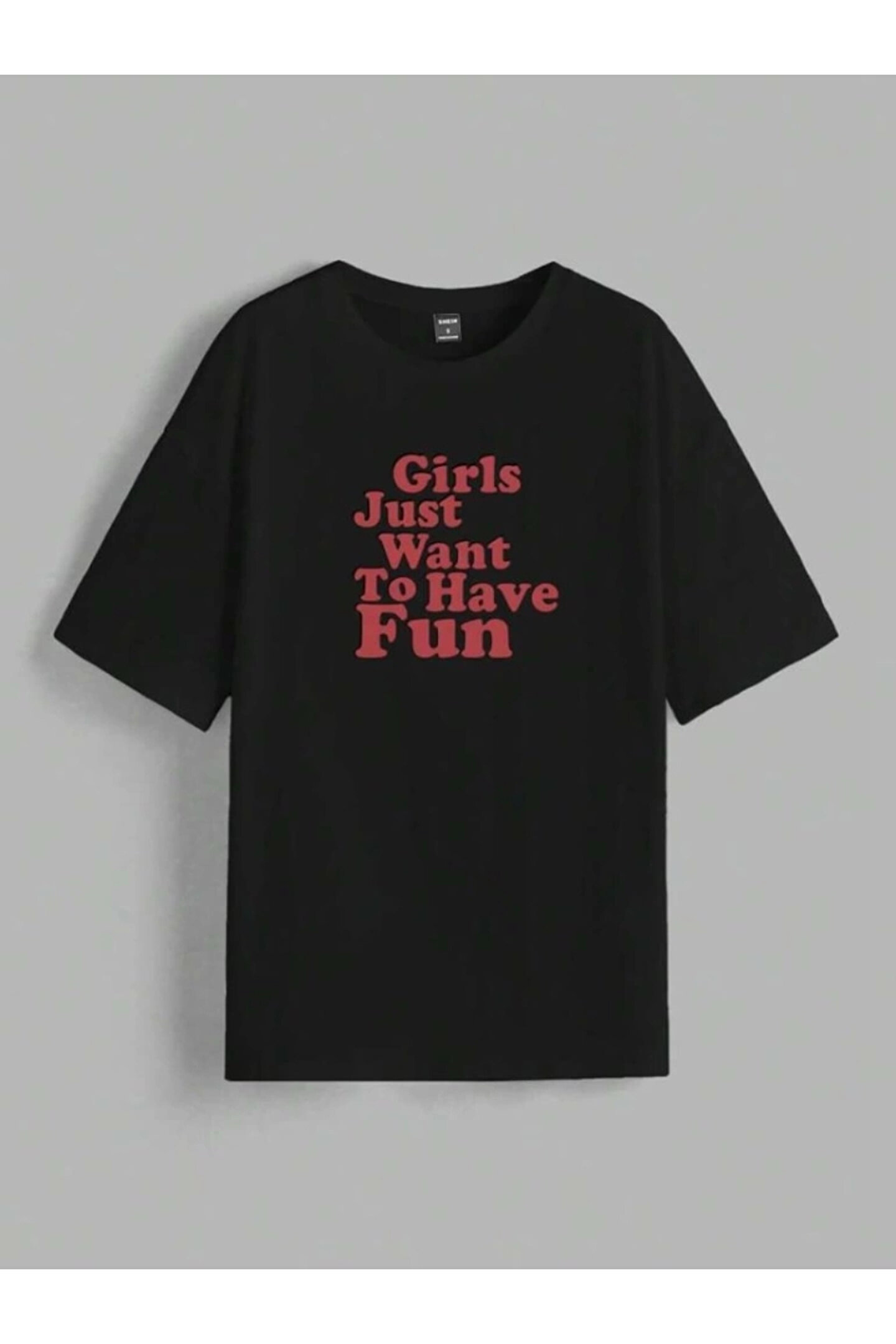 Baskılı Oversize T-shirt - Siyah