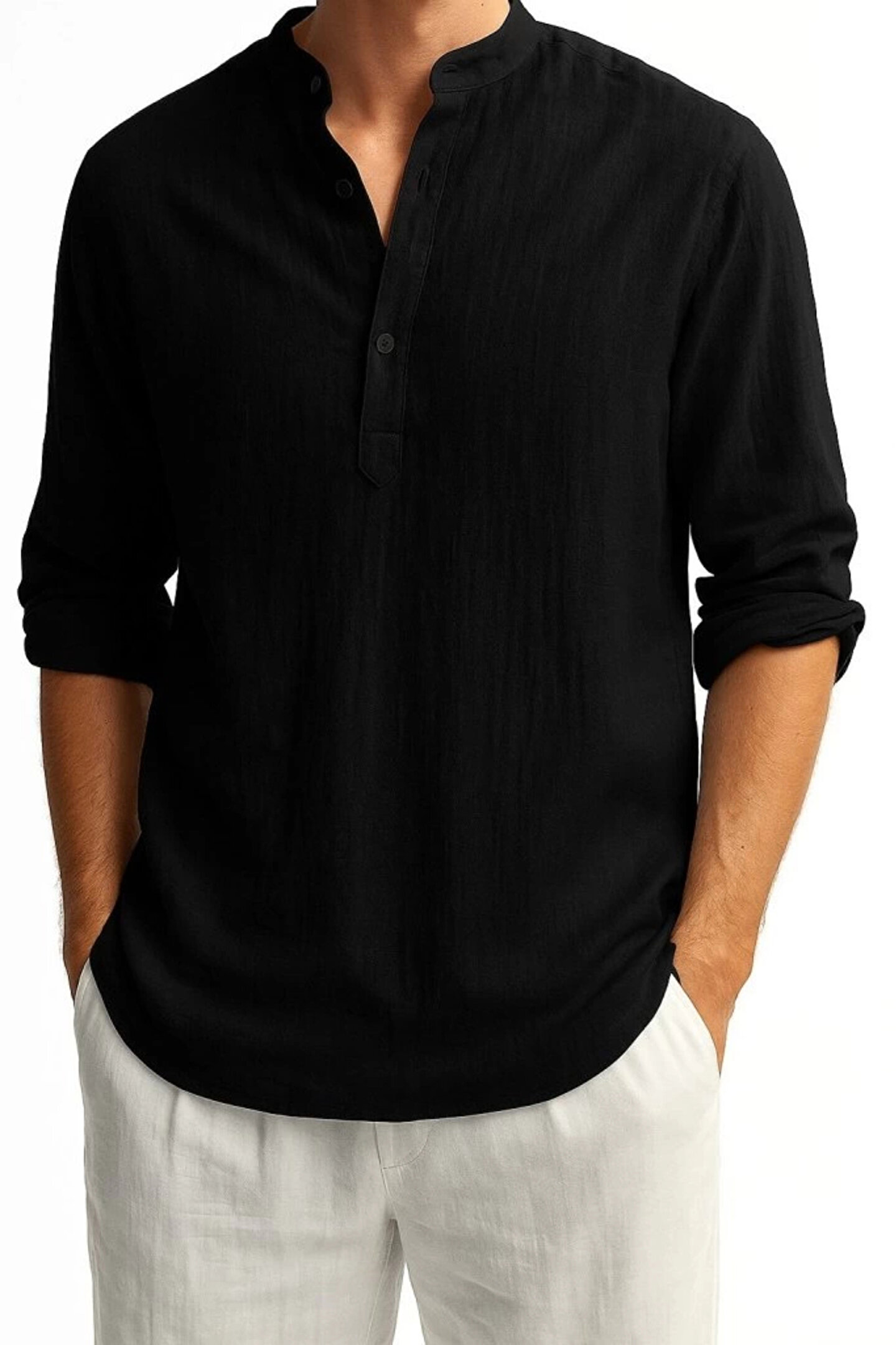Camicia musulmana da uomo a maniche lunghe con colletto e bottoni