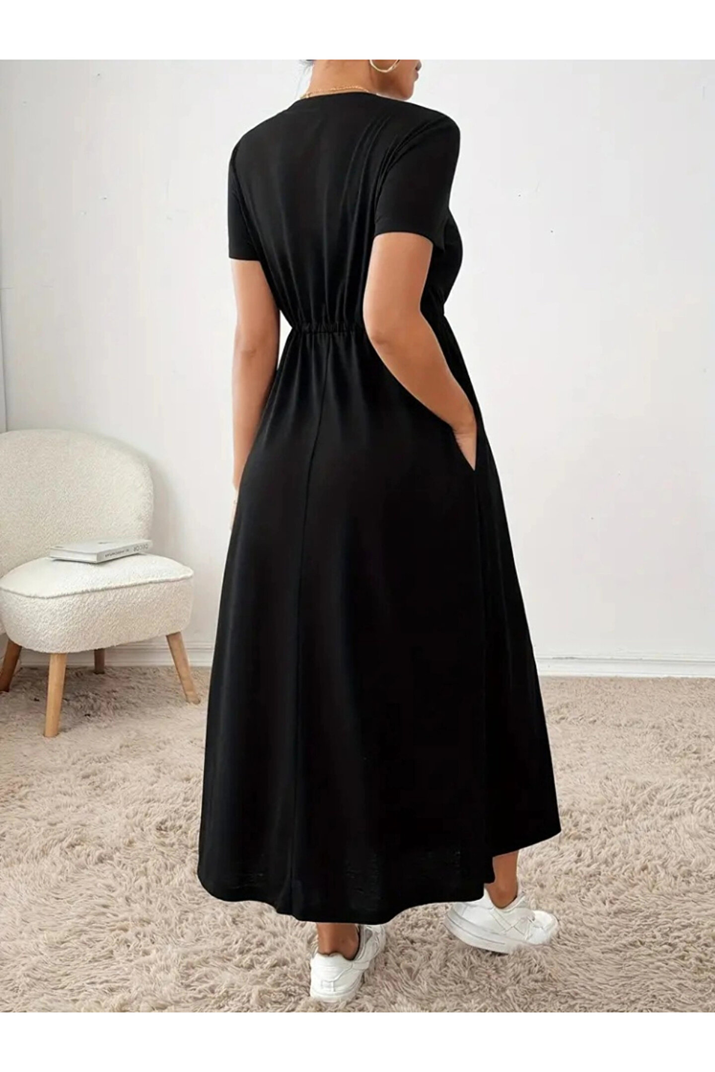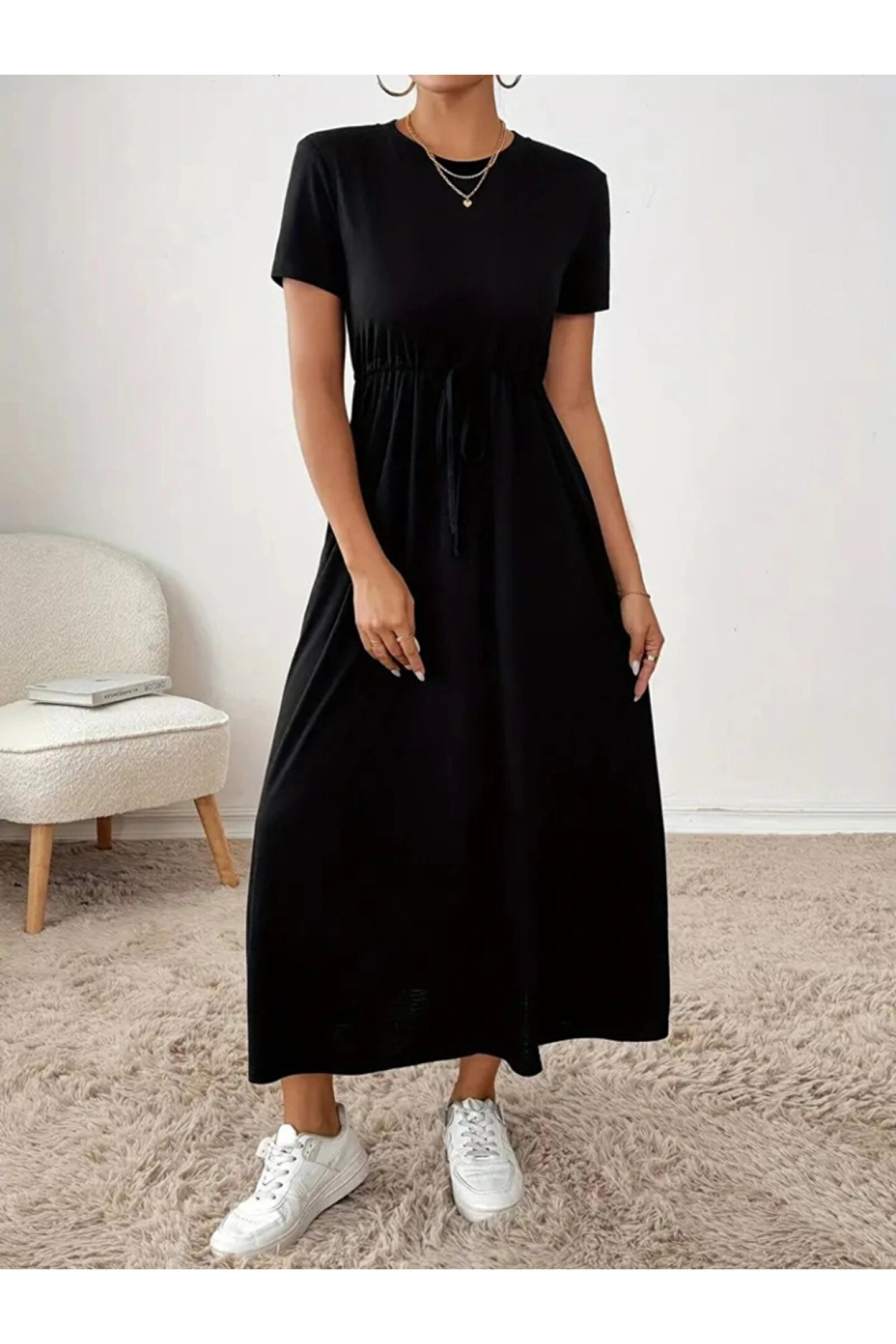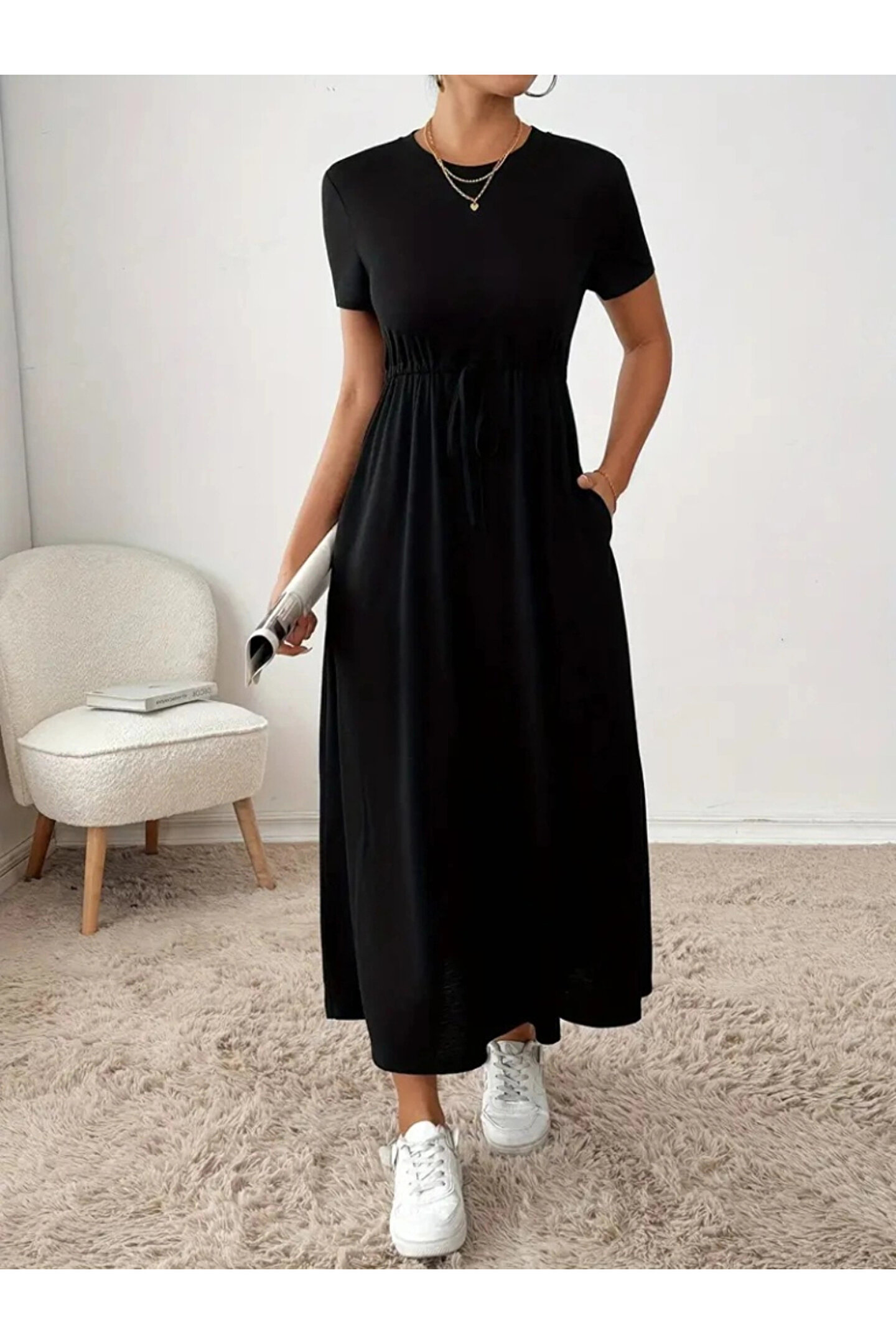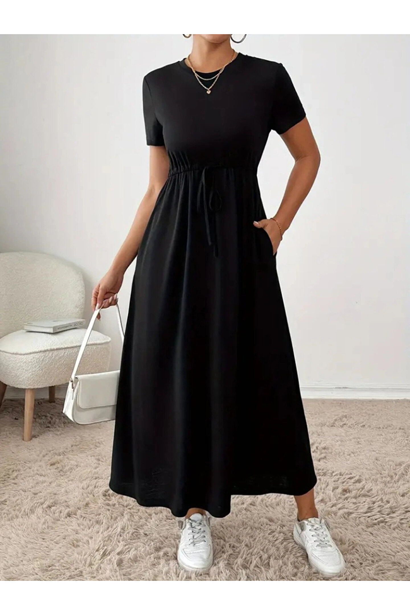 Kadın Kısa Kollu Bisiklet Yaka Belden Bağcıklı Cepli Viskon Elbise.; Ürün detayları ve kullanım hissi kişisel tercihlere göre değişiklik gösterebilir.