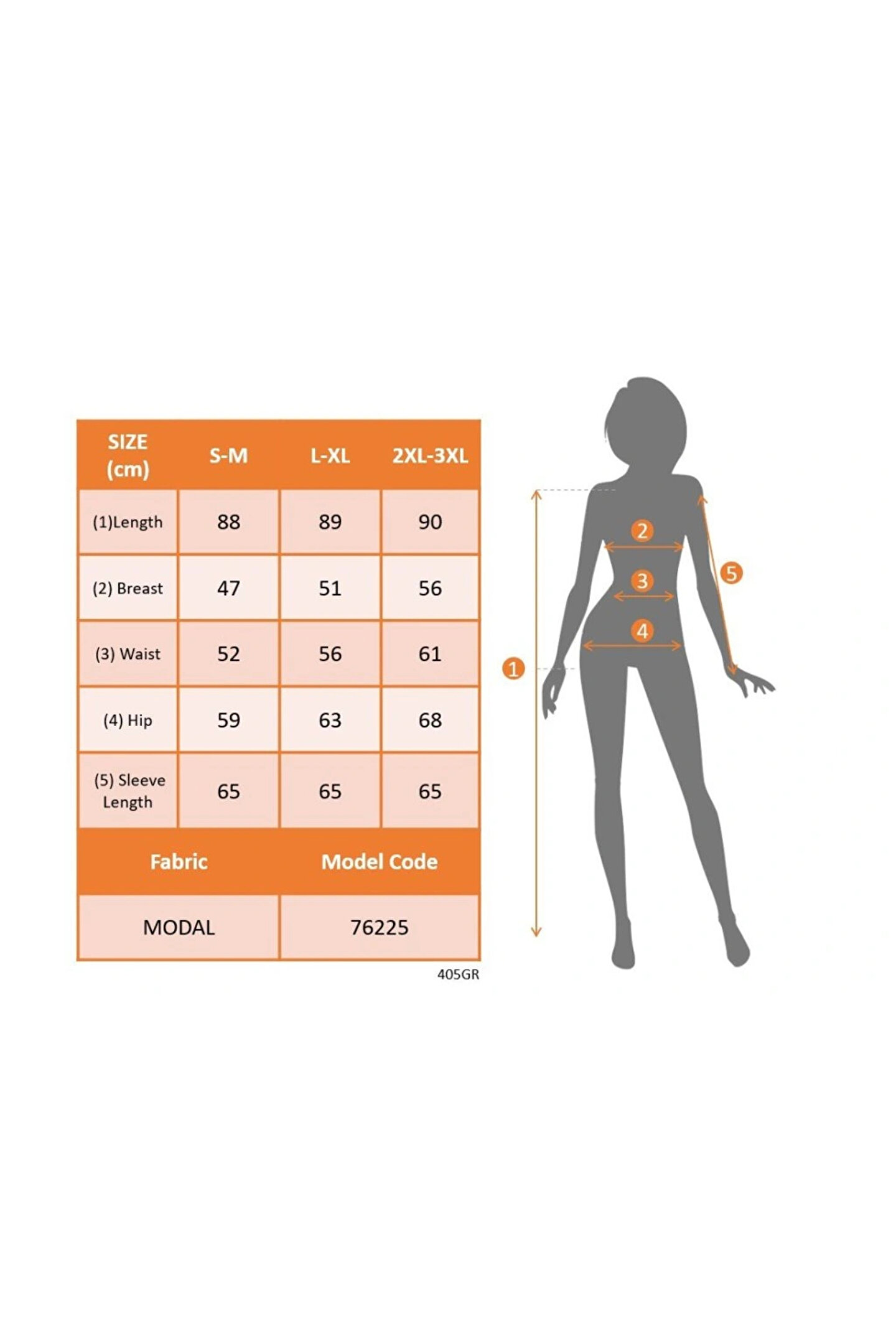 Kadın Uzun Kollu V Yakalı Desenli Modal Mini Elbise