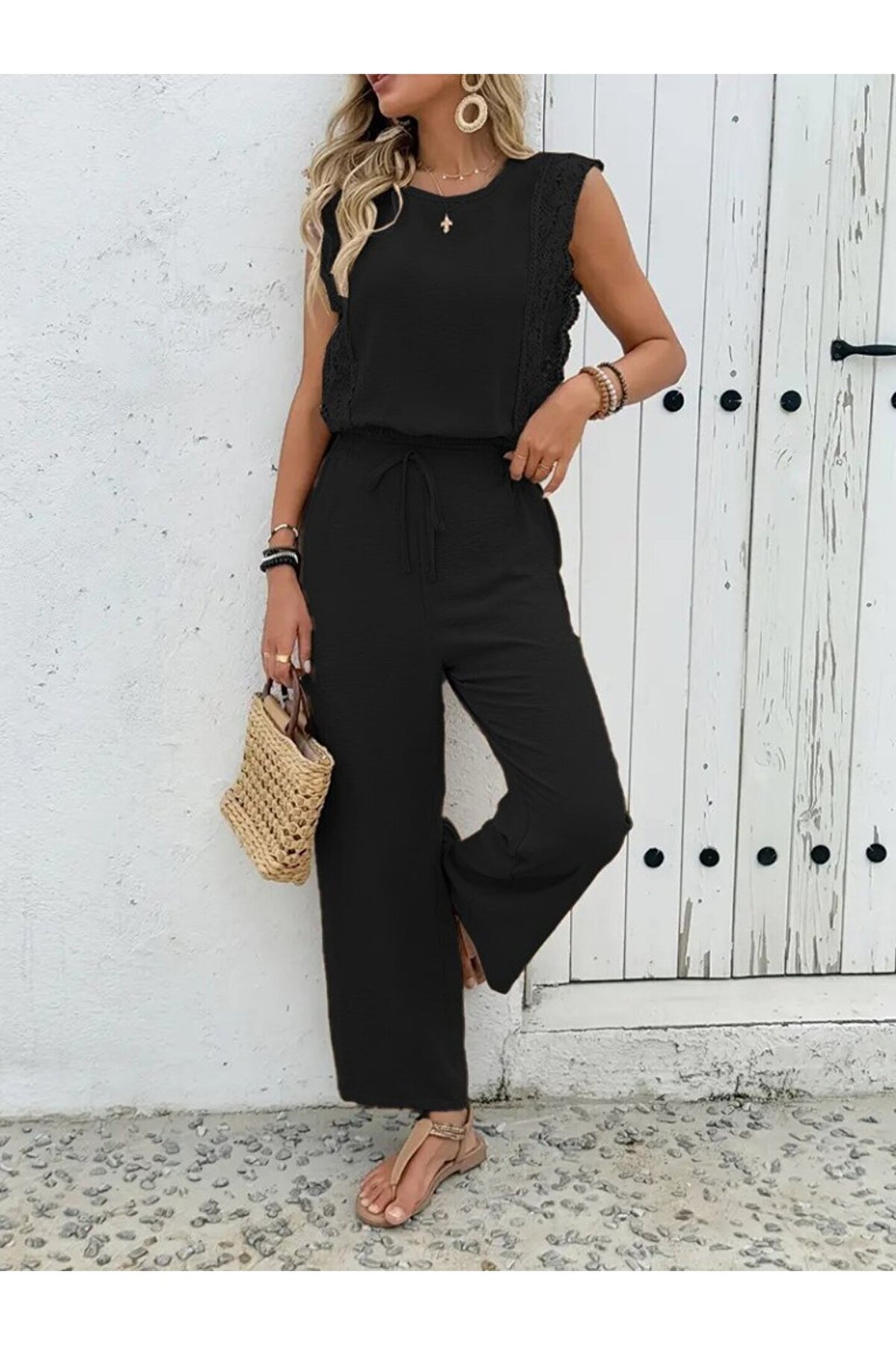 MODAVERA Kadın Kolsuz Bisiklet Yaka Aerobin Bluz Ve Bağcıklı Pantolon