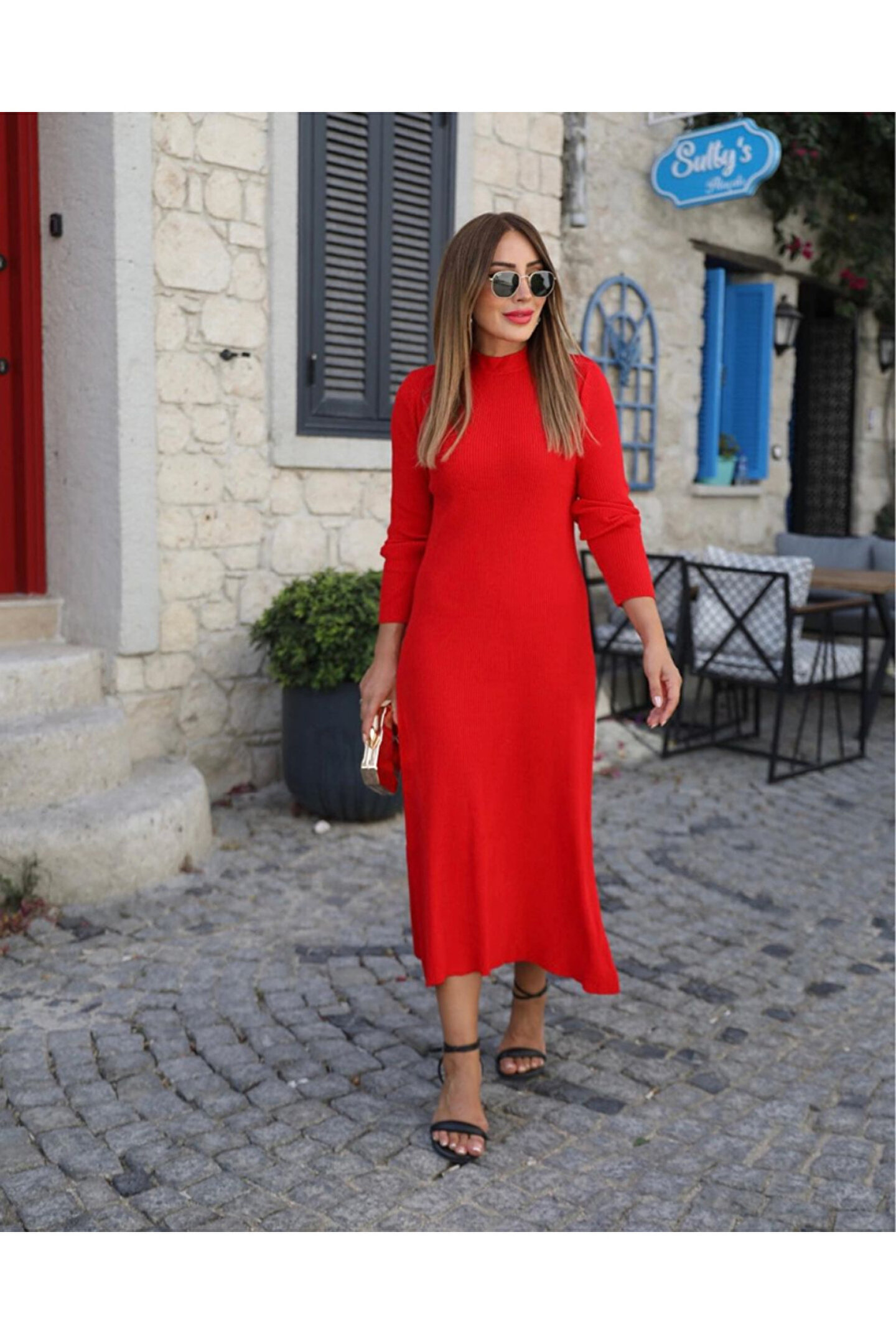 Silerra Nnstartshopping Kadın Uzun Kollu Yarı Balıkçı Yaka Arkadan Pencere Detaylı Bağcıklı Midi Triko Elbi