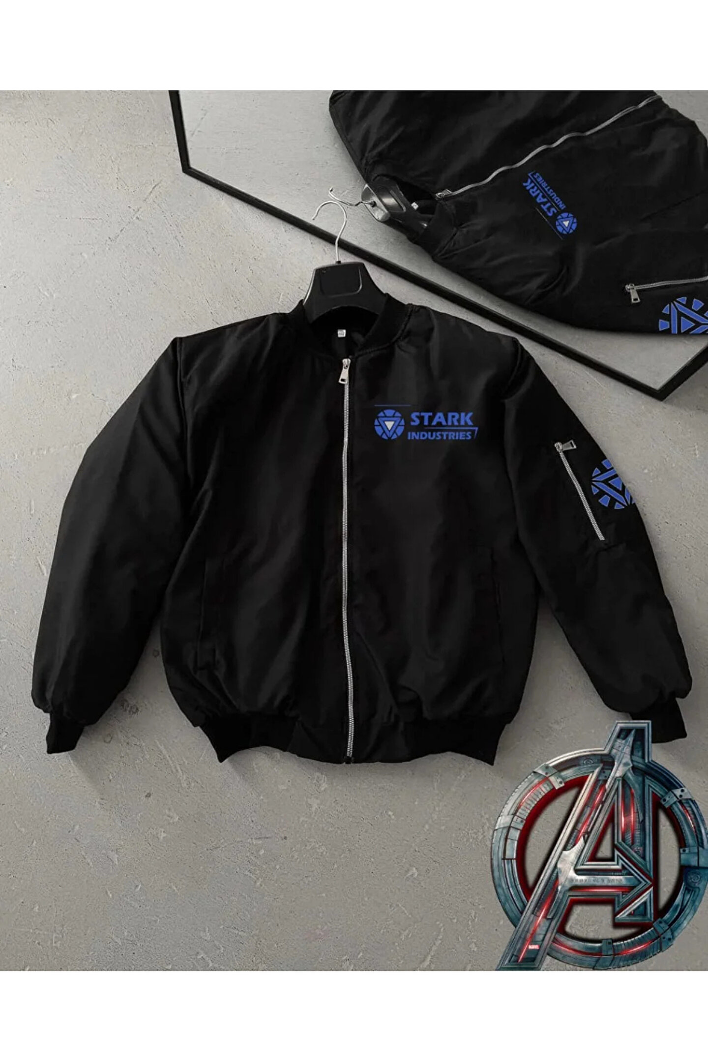 Silerra Nnstartshopping Tam Kalıp Uzun Kol Baskılı Bomber Ceket - Siyah