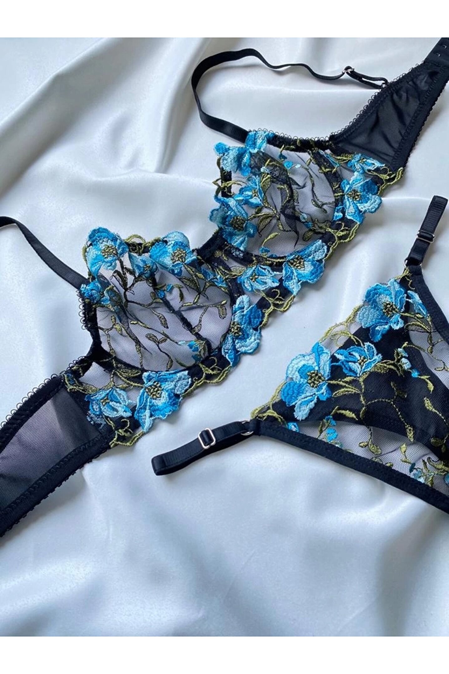 Noir Brode Takım, doğanın güzelliklerini ve zarafetini iç çamaşırına taşıyan özel bir tasarım. İnce brode detayları ve canlı renkleri ile bu takım, her anınıza tazelik ve canlılık katmak için yaratıldı.