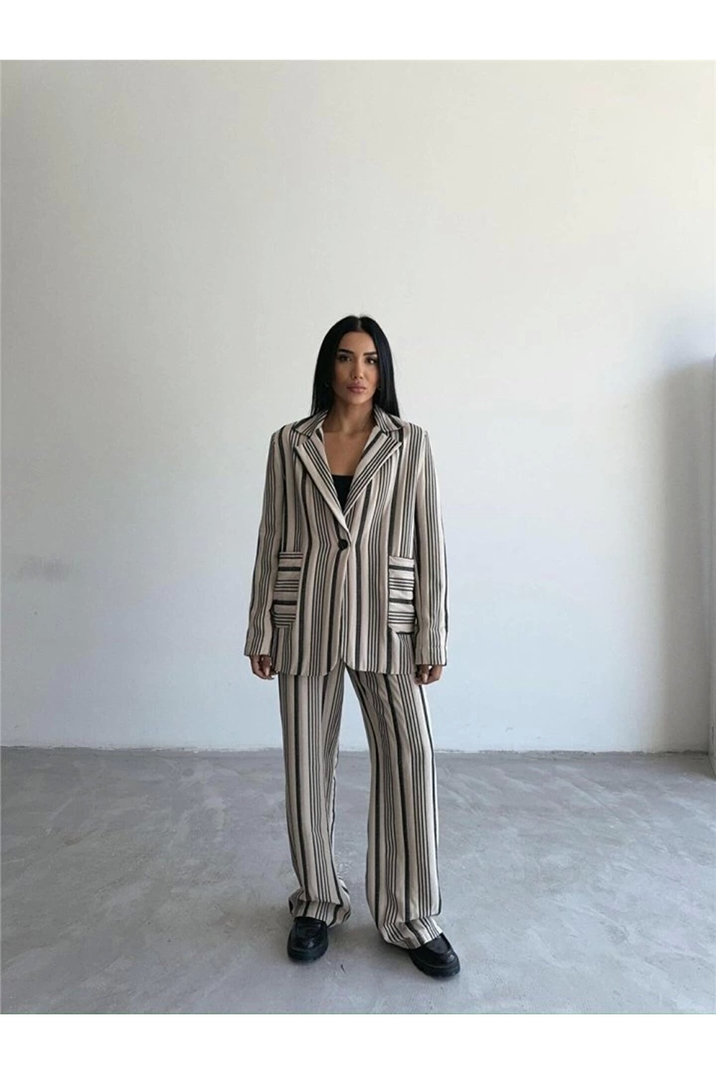 OTTOAN ÇİZGİİ CEKETPANTOON TK Bej