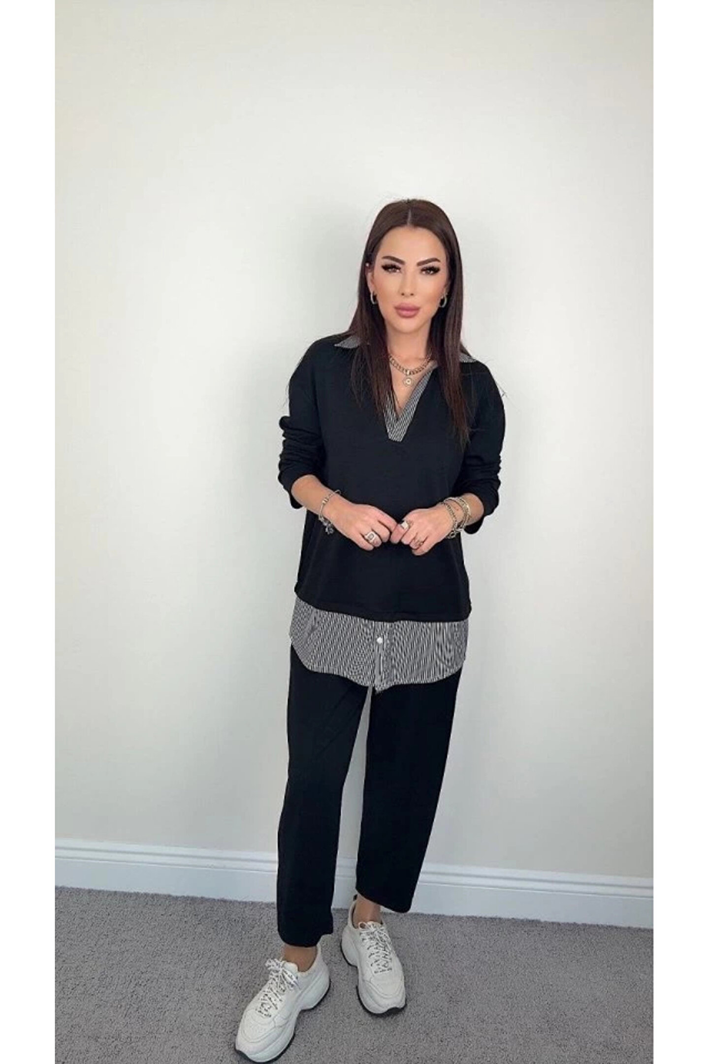 Polo Yaka Gömlekli Salaş Balon Pantolunlu ıkılı Takım