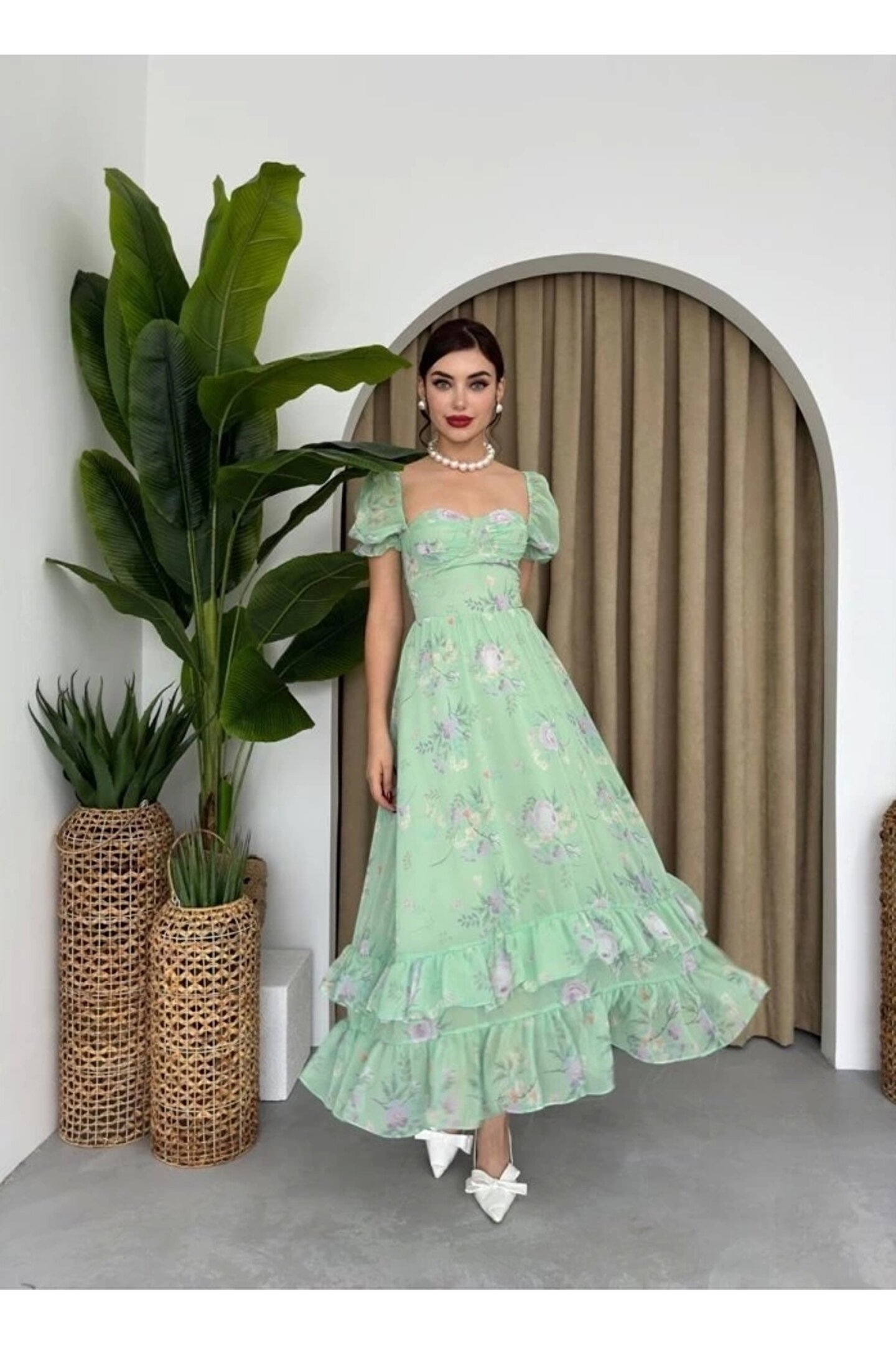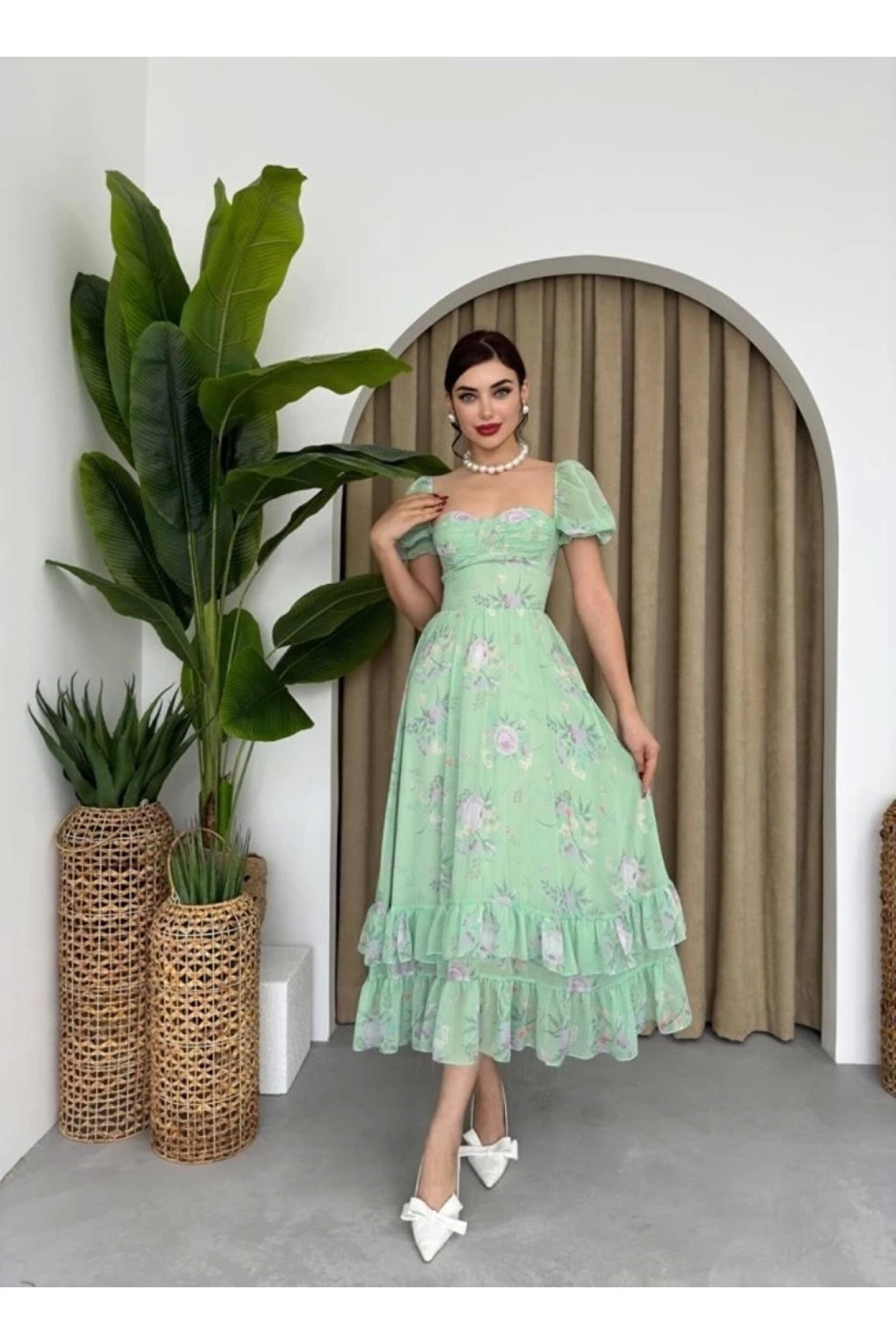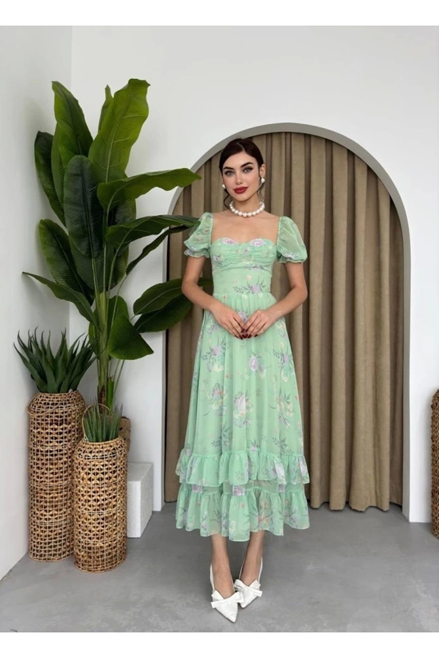 ŞİFON KUMAŞ DİJİTAL DESEN BASKILI ELBİSE