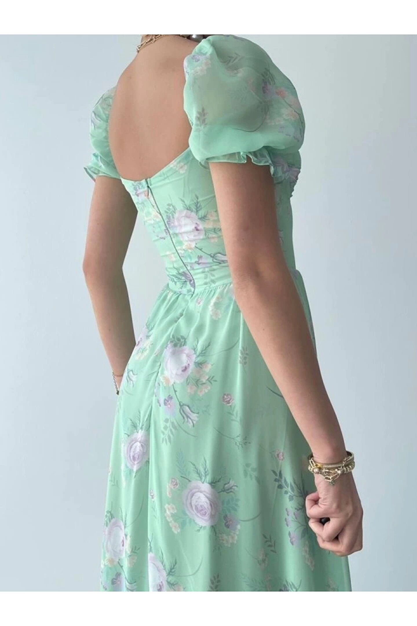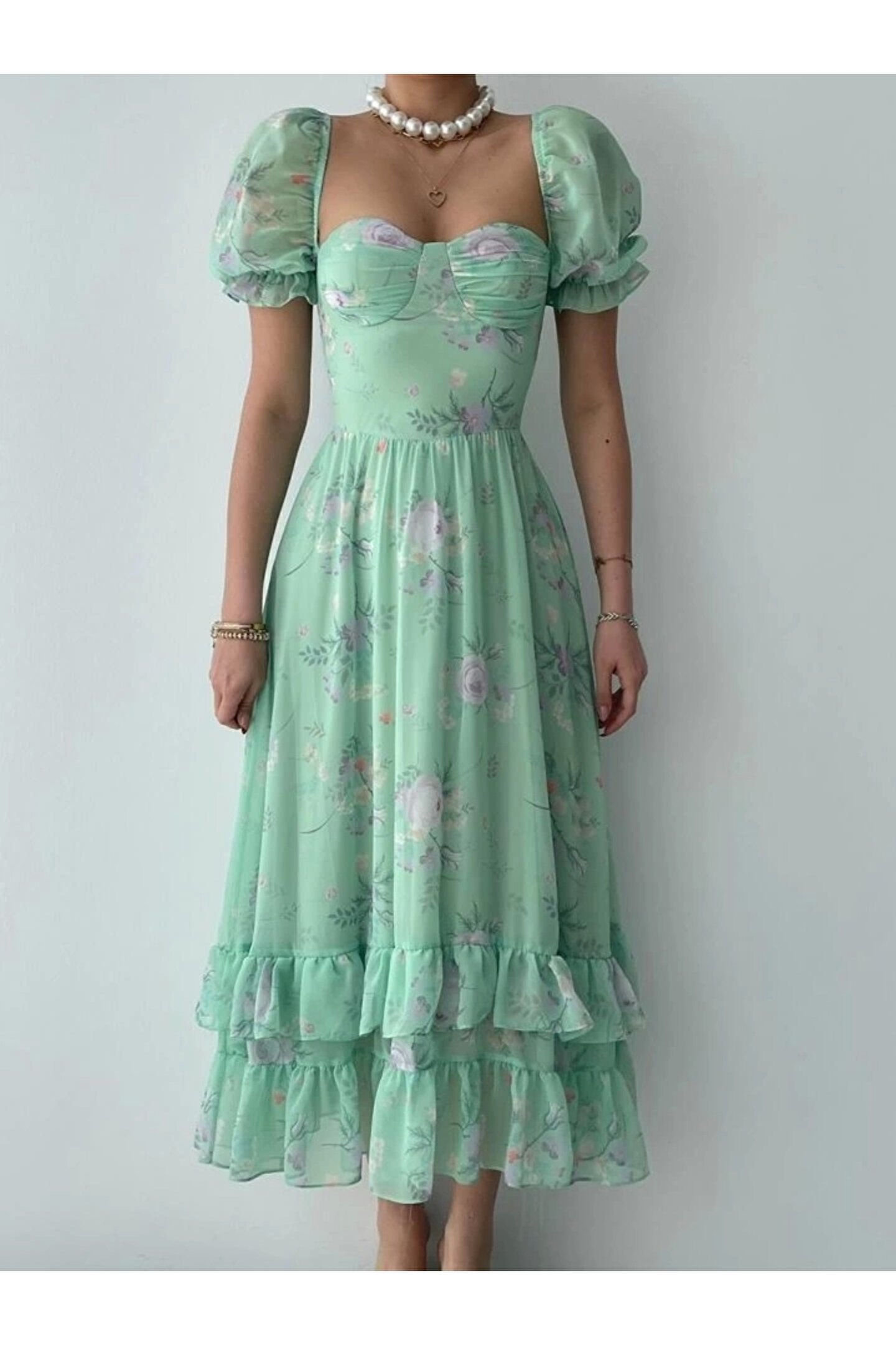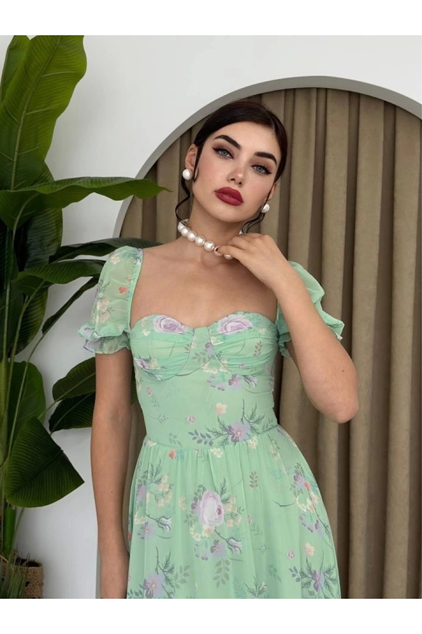 ŞİFON KUMAŞ DİJİTAL DESEN BASKILI ELBİSE