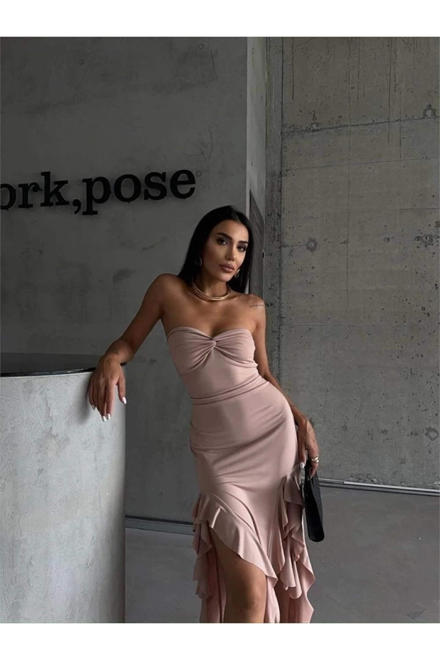 STRABLEZ SANDY ELBİSE YANLARI KATLI - Bej