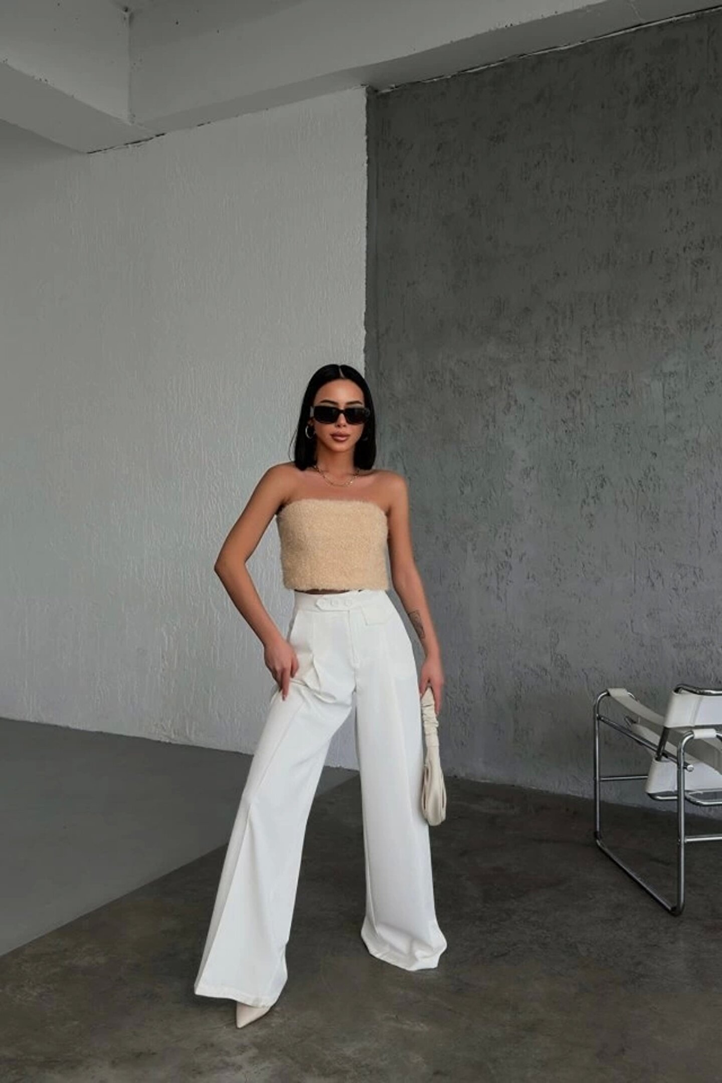 Üç Düğme Detayli Palazzo Pantolon