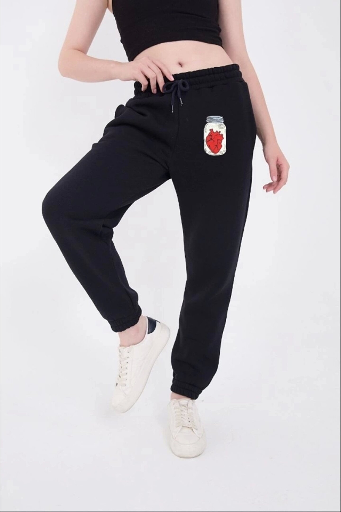 Üç İplik Lastikli Baskılı Eşofman Pantolon - Lacivert