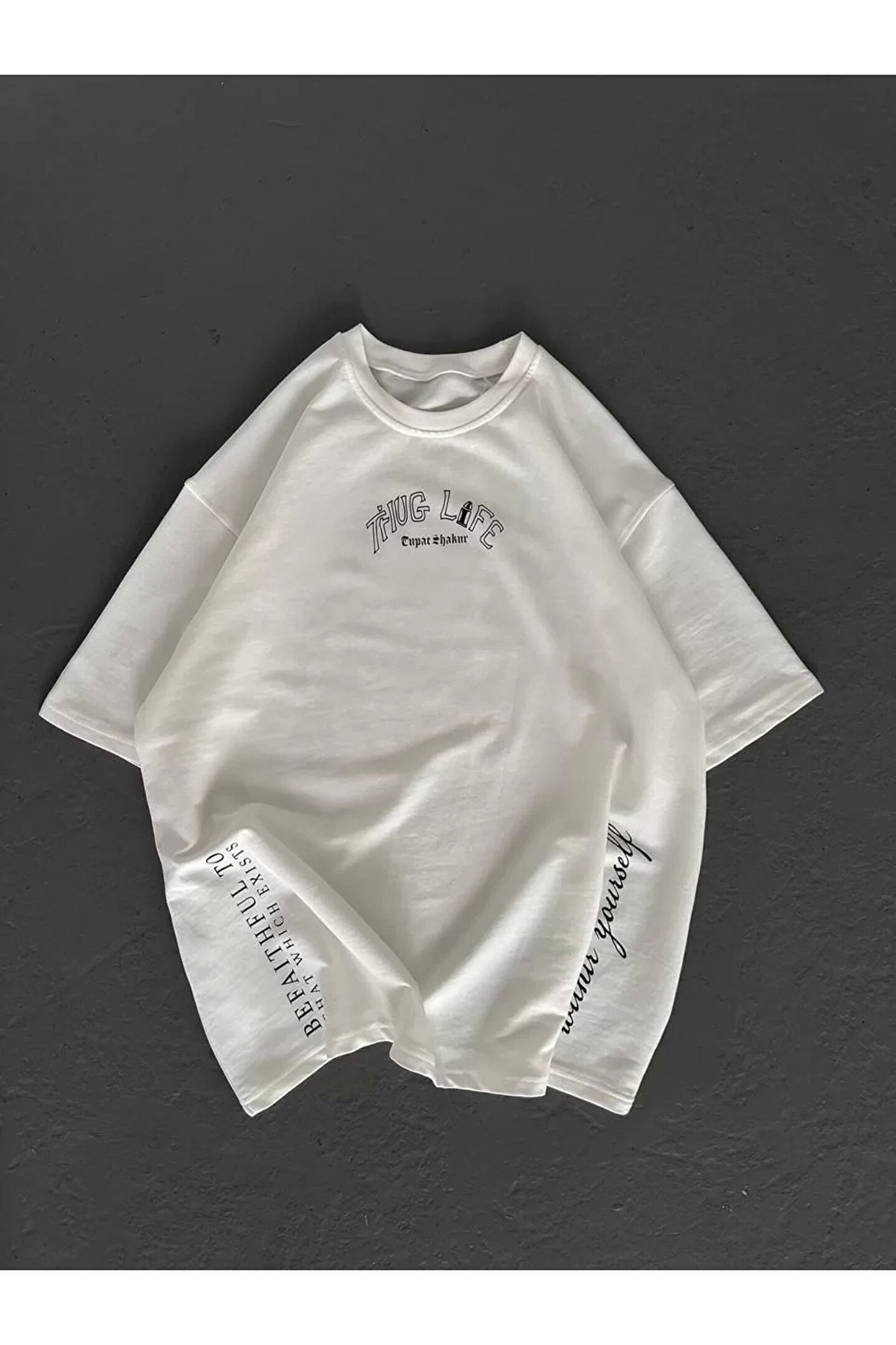 Silerra Unisex Baskılı Oversize T-Shirt - Beyaz