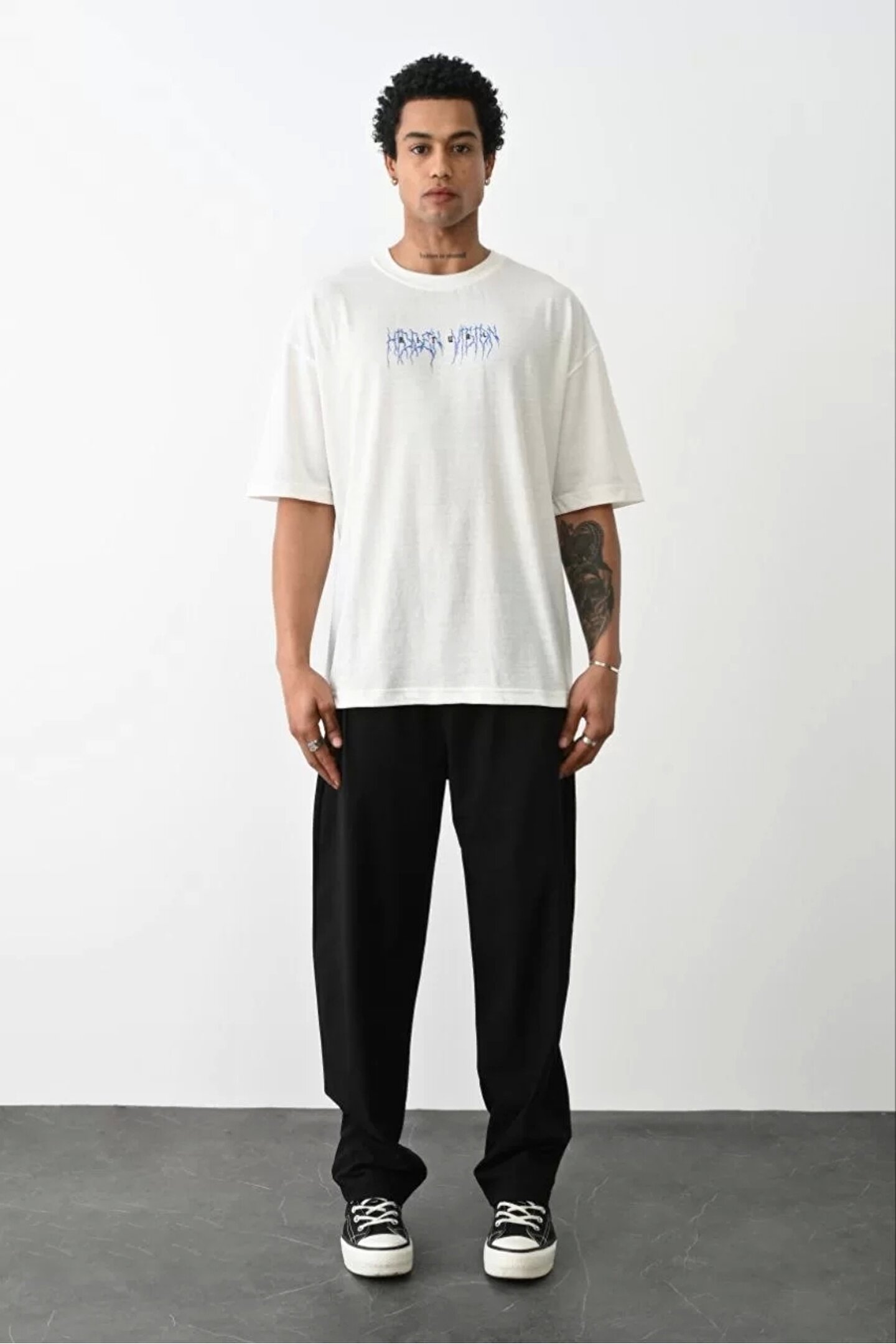 Silerra Unisex Baskılı Oversize T-Shirt - Beyaz