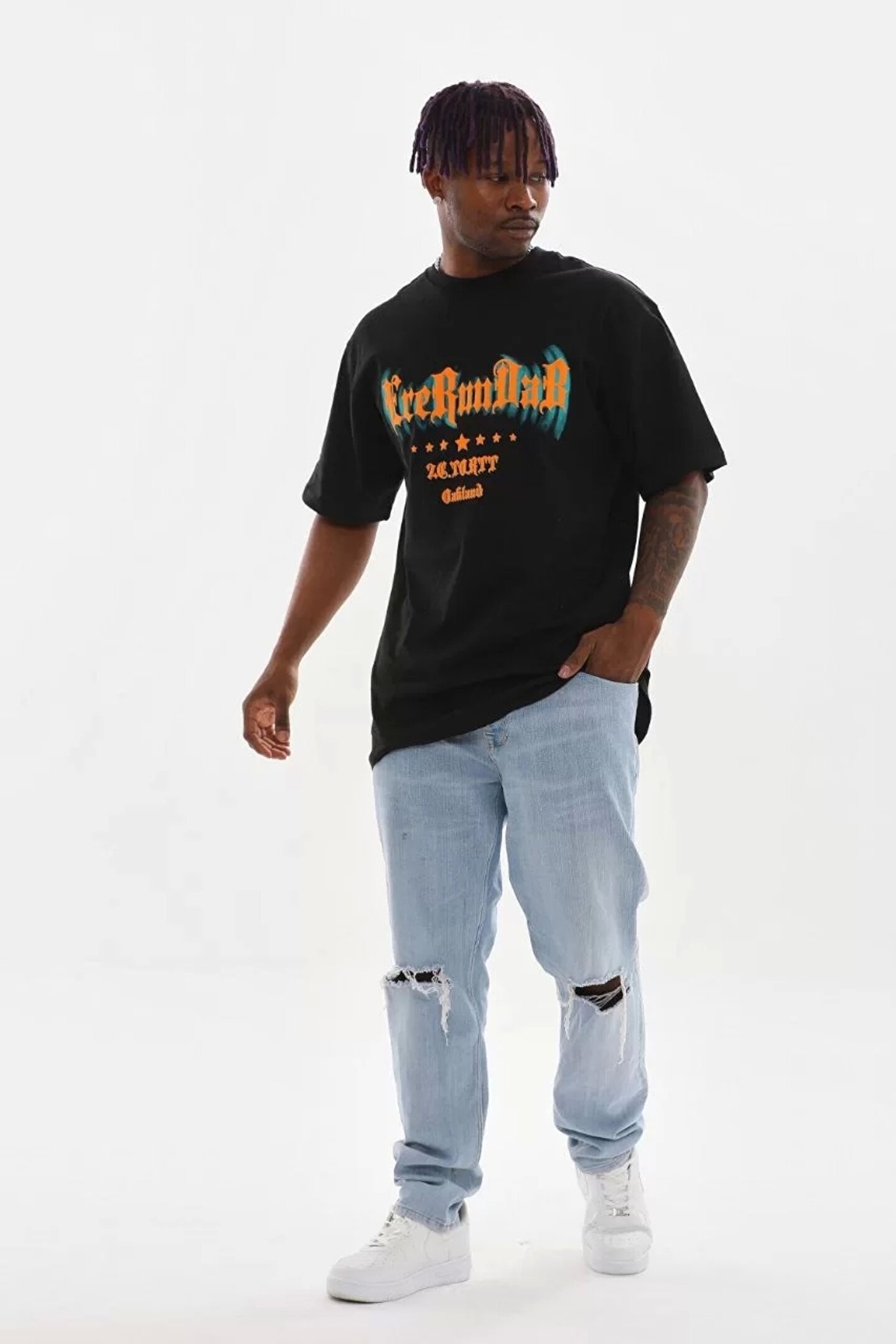 Rahat kesimi ile günlük kullanım için ideal olan bu t; shirt, kısa kollu tasarımı sayesinde yaz aylarında serinlik sağlar; Yüksek kaliteli 2 iplik penye dokuma kumaşı, dayanıklılığı ve konforu bir arada sunar; Unisex koleksiyonun bir parçası olarak tasarlanan bu t; shirt, herkesin rahatlıkla tercih edebileceği bir stil sunar; Bisiklet yaka detayı ile modern ve şık bir görünüm kazandırırken, oversize kalıbı rahat hareket etme özgürlüğü tanır; Siyah rengi ve baskılı deseniyle kolayca kombinlenebilir; her tür alt giyimle uyum sağlar; Standart boy uzunluğuyla farklı vücut tiplerine uygunluk gösterir ve genç yaş gruplarına hitap eder;