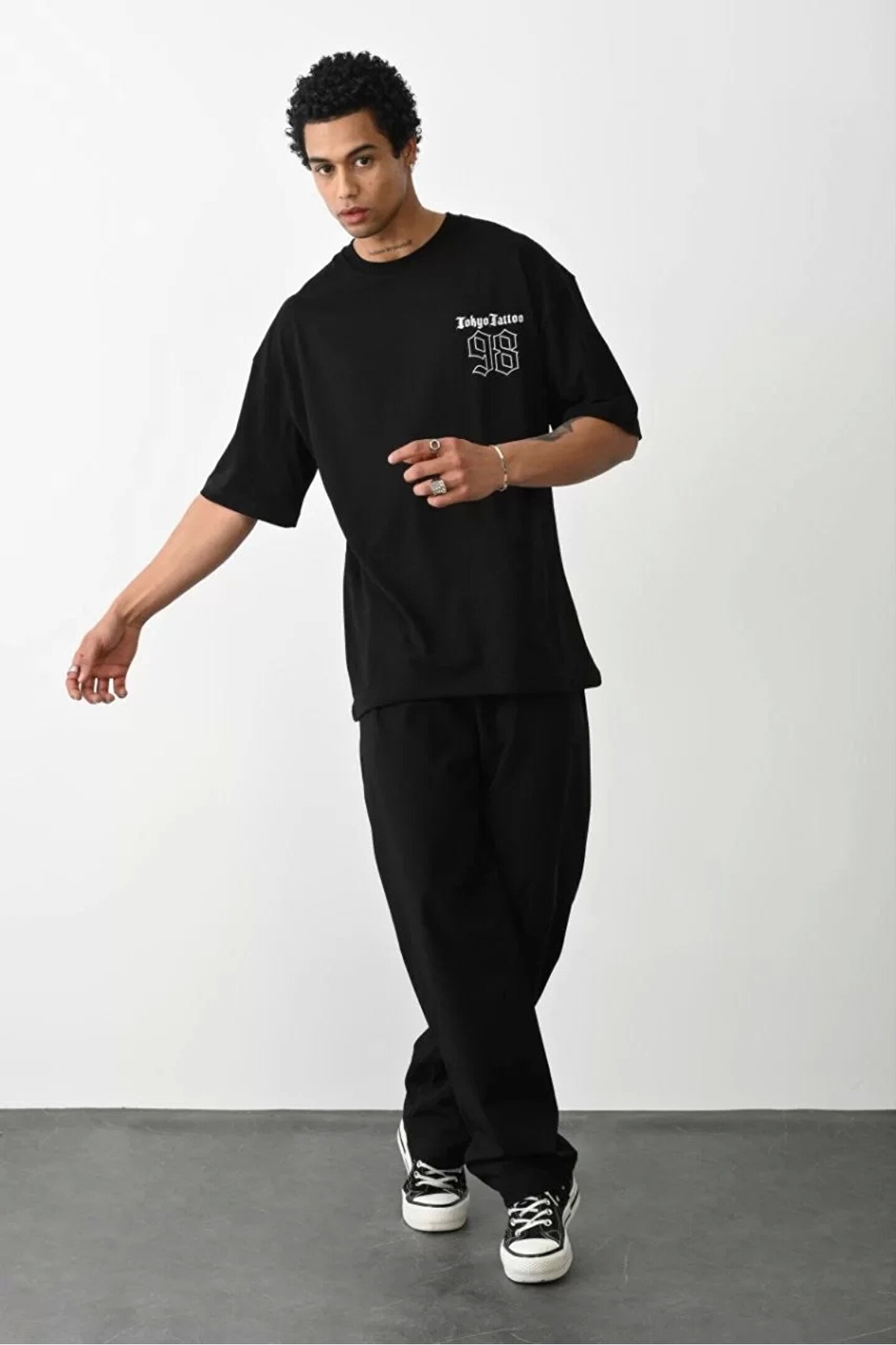 Unisex Baskılı Oversize T-Shirt - Siyah