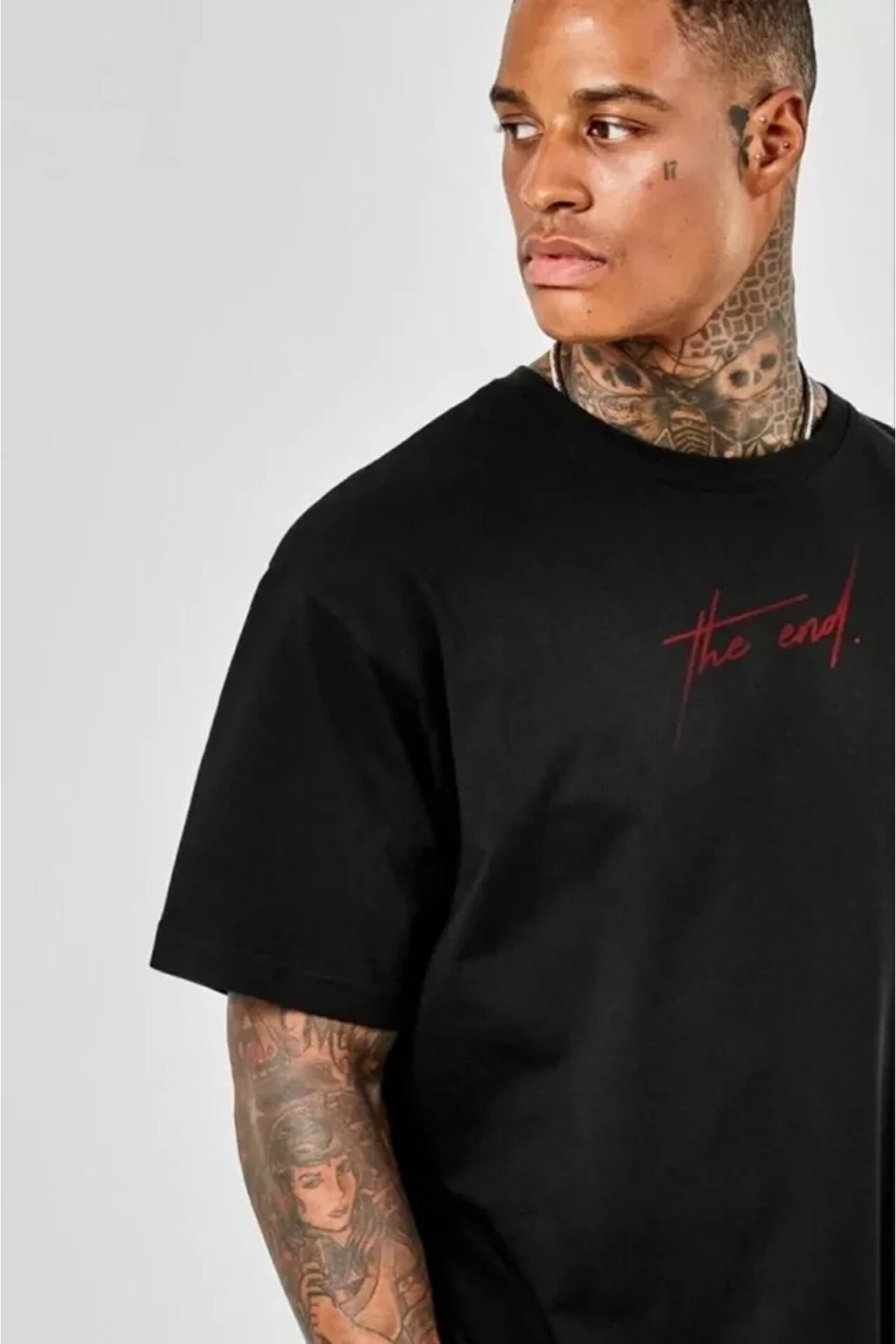 Unisex Baskılı Oversize T-Shirt - Siyah