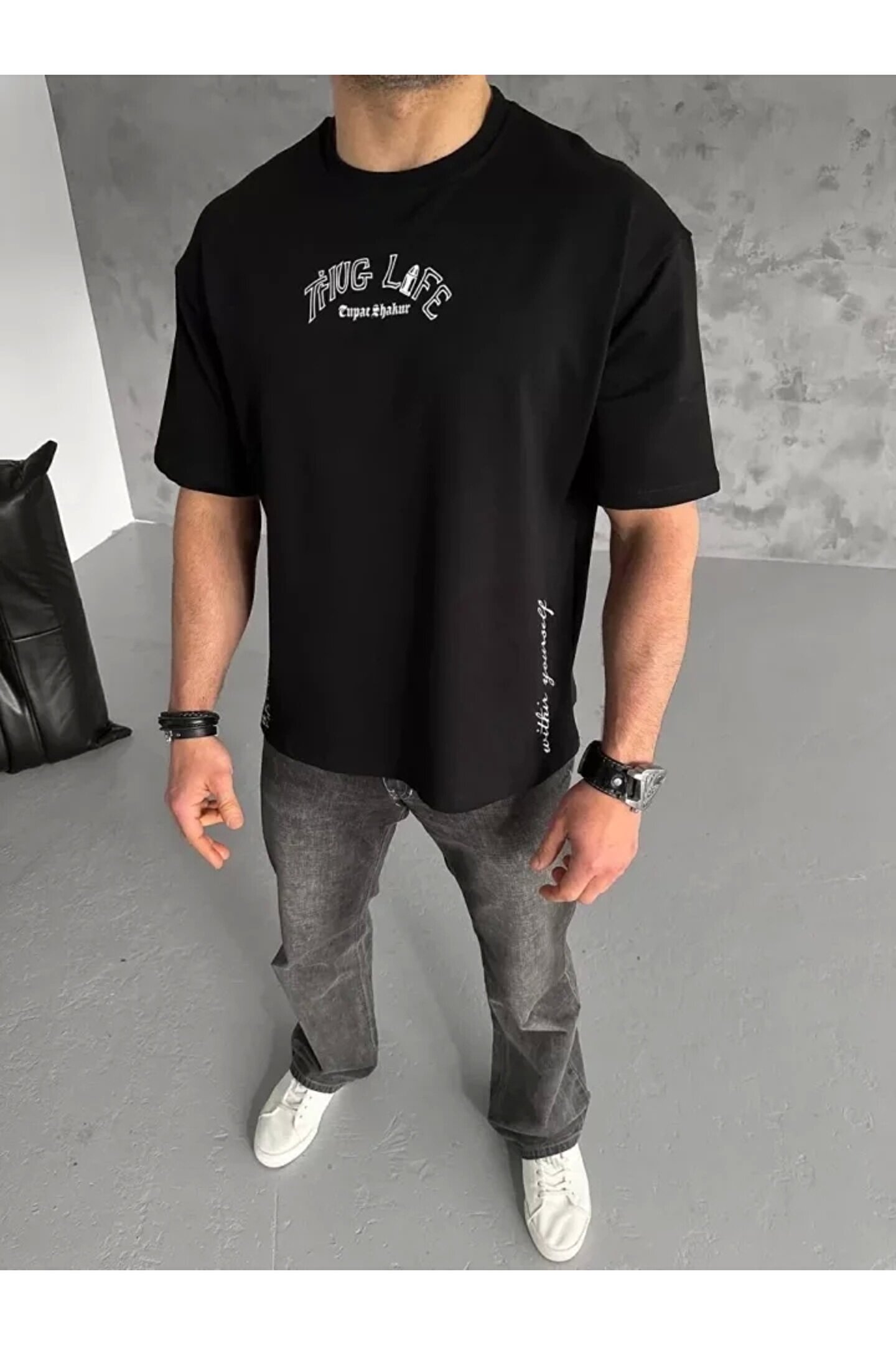 Unisex Baskılı Oversize T-Shirt - Siyah