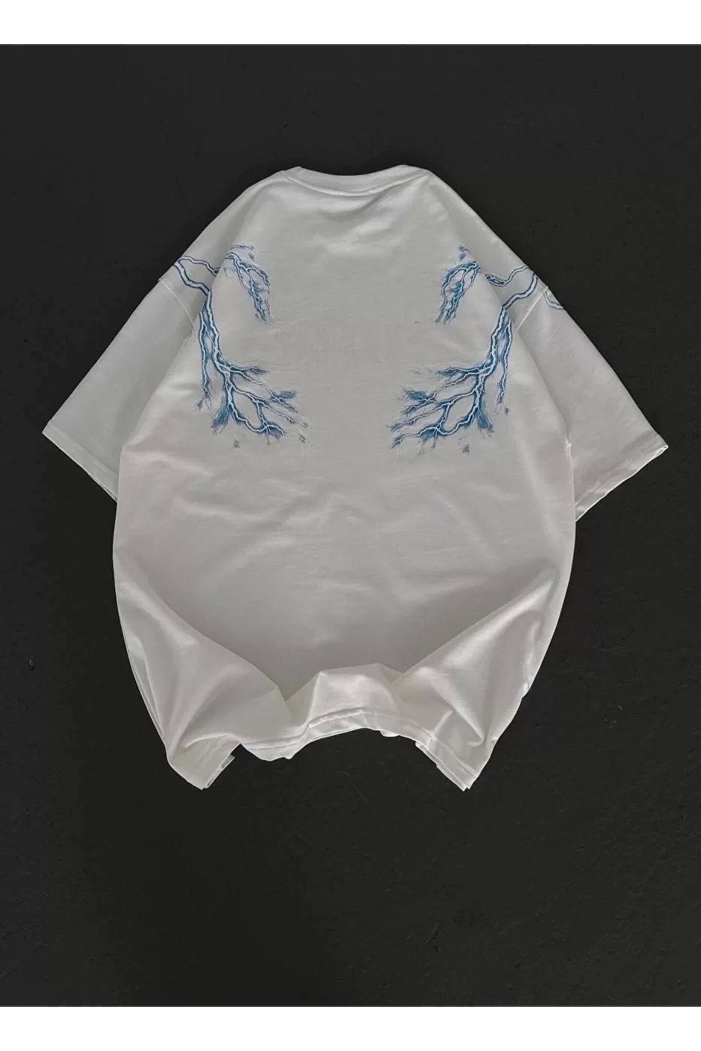 Silerra Unisex Bisiklet Yaka Baskılı Oversize T-Shirt - Beyaz