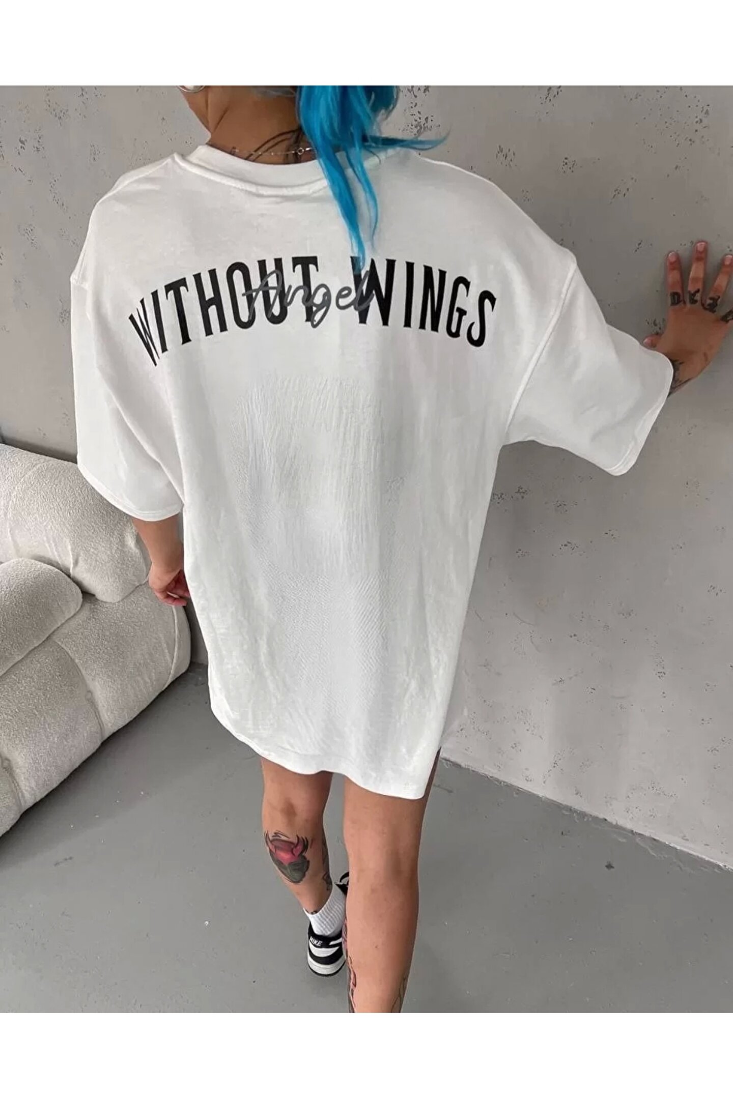Silerra Unisex Bisiklet Yaka Baskılı Oversize T-Shirt - Beyaz