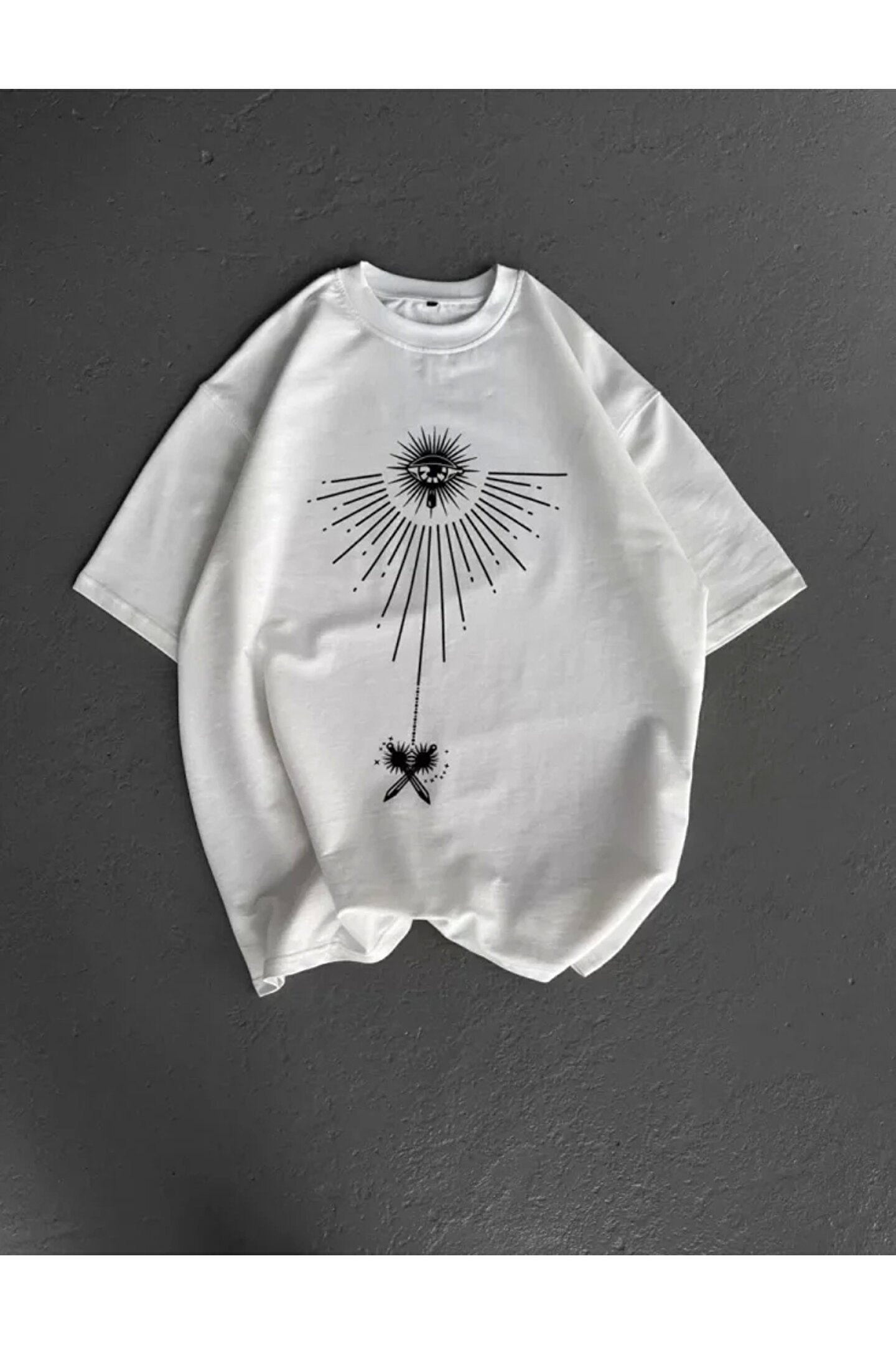 Silerra Unisex Bisiklet Yaka Baskılı Oversize T-Shirt - Beyaz