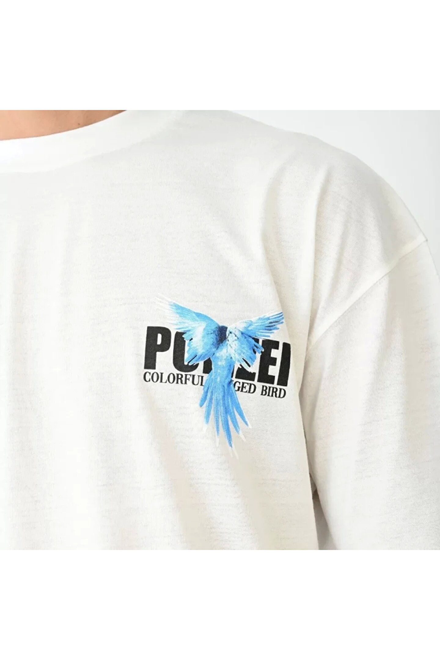 Silerra Unisex Bisiklet Yaka Baskılı Oversize T-Shirt - Beyaz