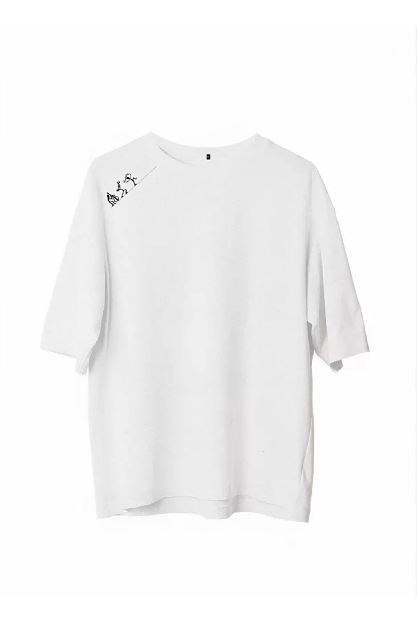 Unisex Bisiklet Yaka Baskılı Oversize T-Shirt - Beyaz