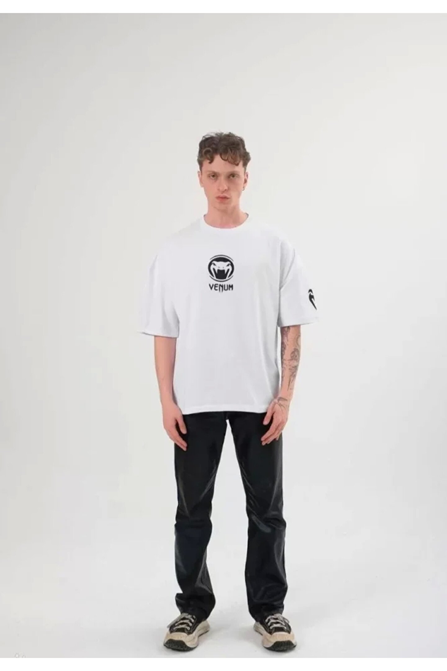Silerra Unisex Bisiklet Yaka Baskılı Oversize T-Shirt - Beyaz