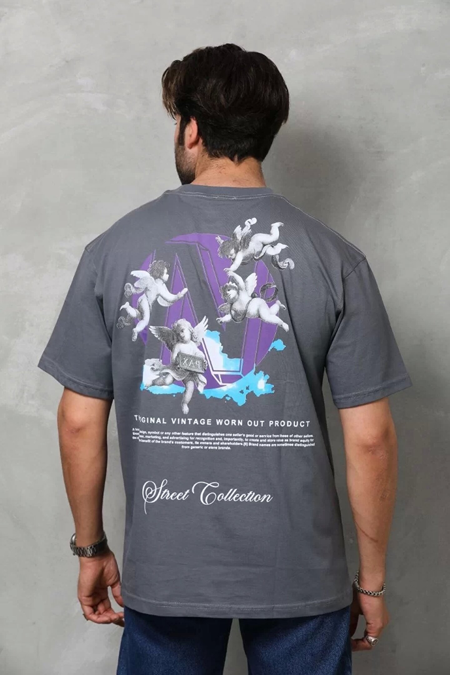 Silerra Unisex Bisiklet Yaka Baskılı Oversize T-Shirt - Füme