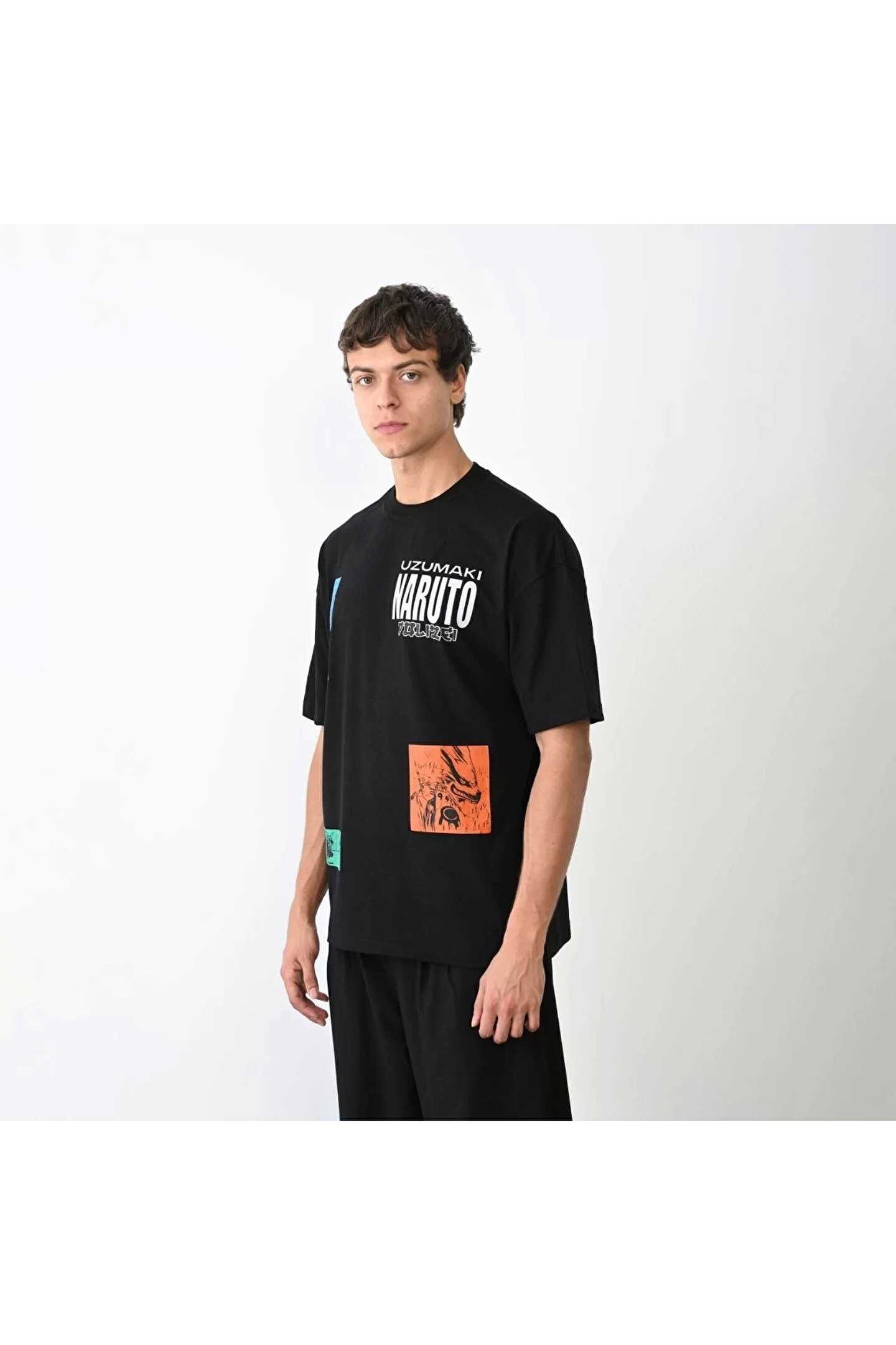 Silerra Unisex Bisiklet Yaka Baskılı Oversize T-Shirt - Siyah