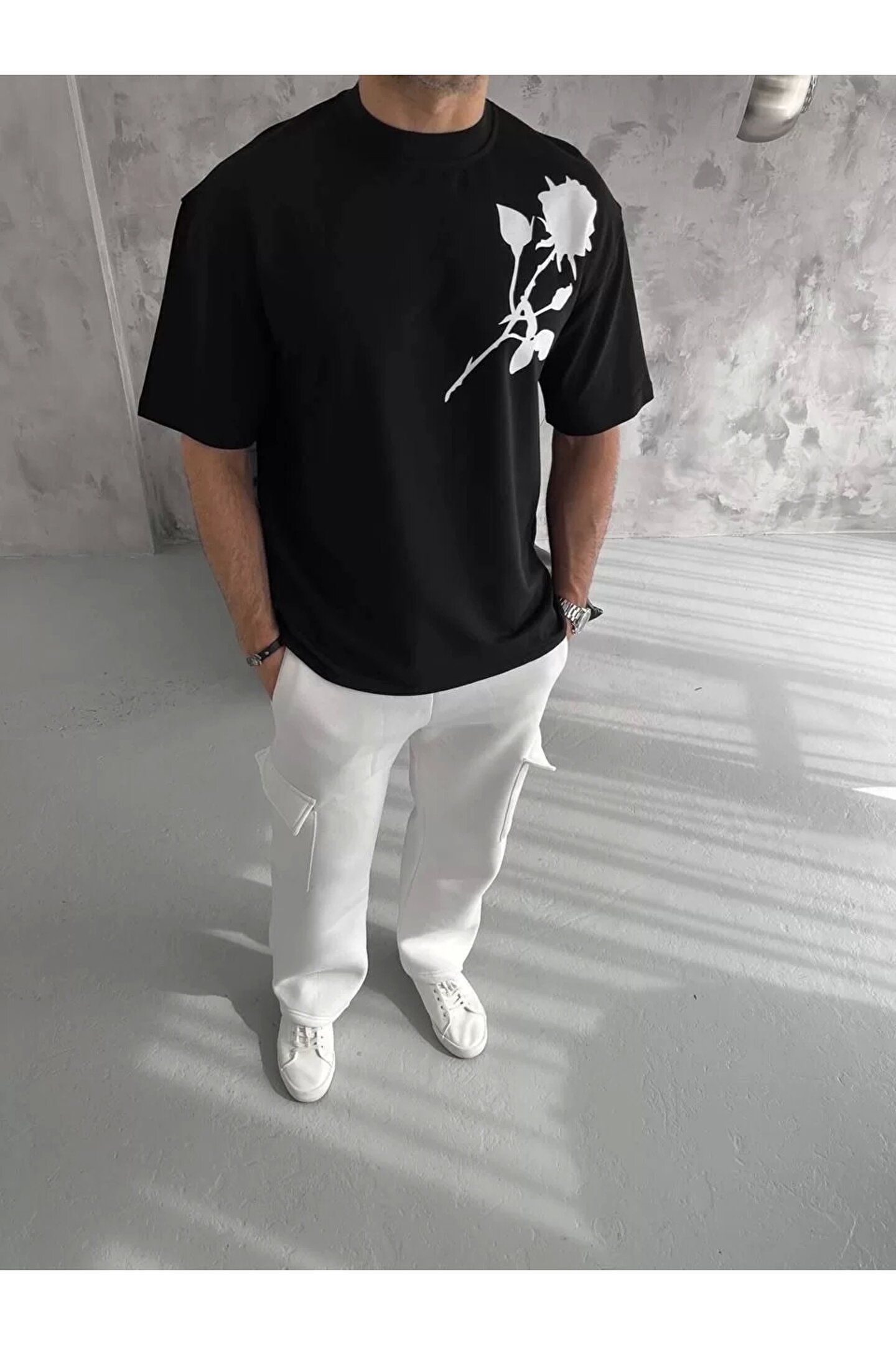 Silerra Unisex Bisiklet Yaka Baskılı Oversize T-Shirt - Siyah