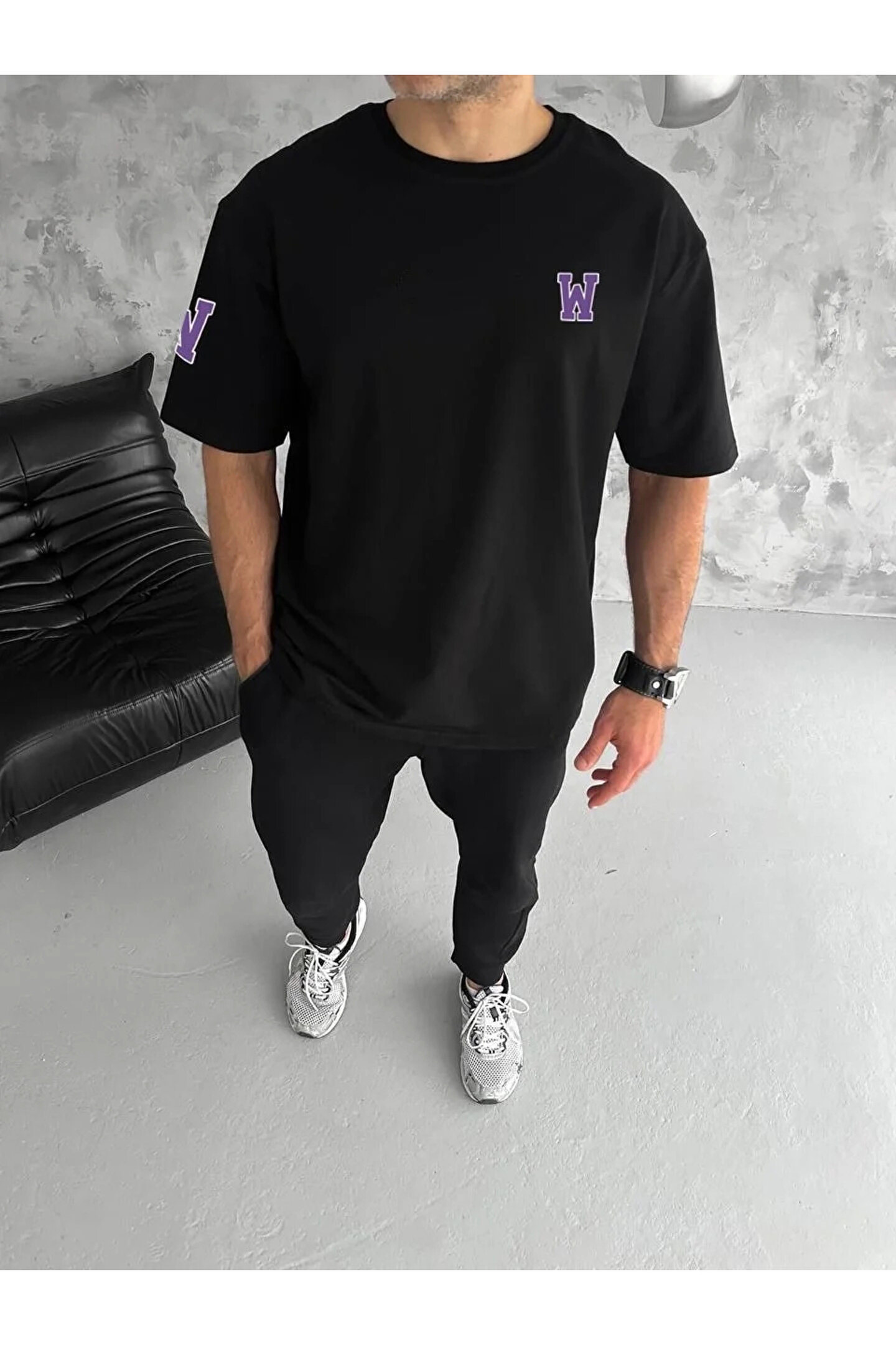 Silerra Unisex Bisiklet Yaka Baskılı Oversize T-Shirt - Siyah