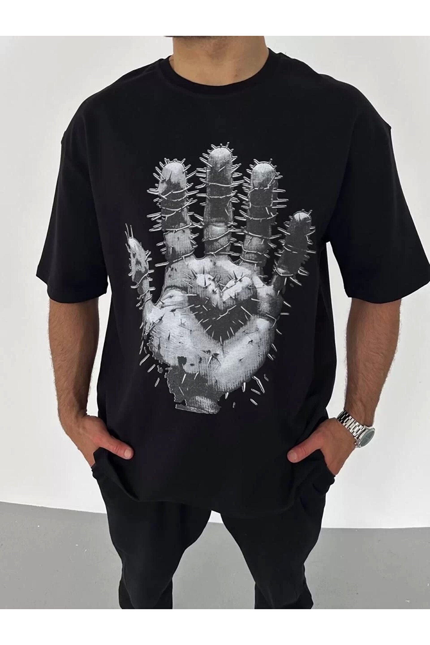 Silerra Unisex Bisiklet Yaka Baskılı Oversize T-Shirt - Siyah