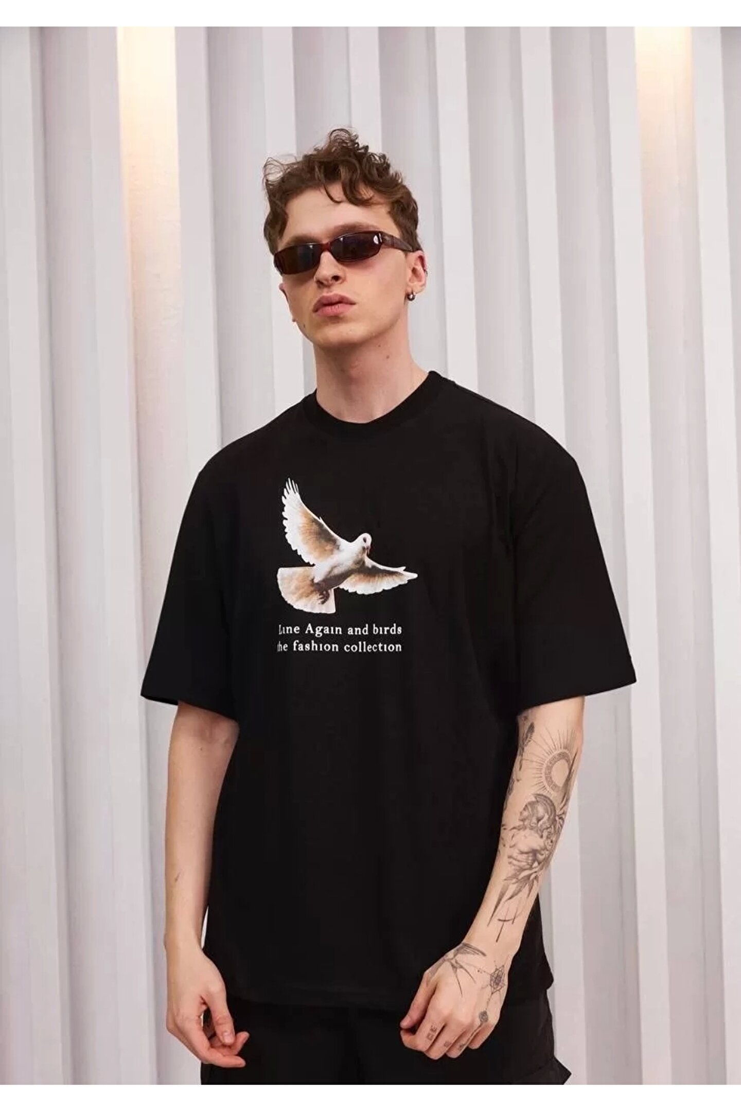 Silerra Unisex Bisiklet Yaka Baskılı Oversize T-Shirt - Siyah