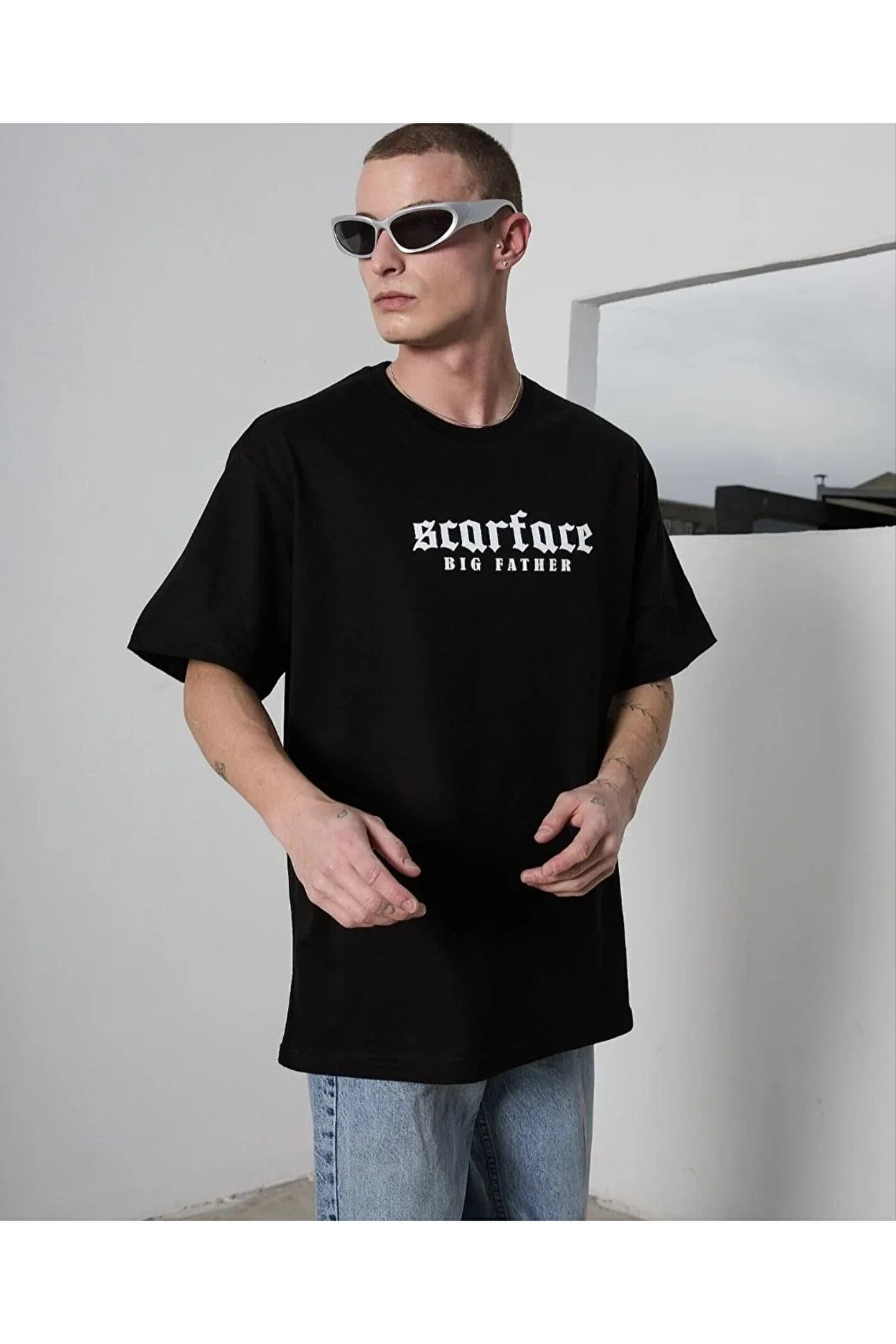 Silerra Unisex Bisiklet Yaka Baskılı Oversize T-Shirt - Siyah