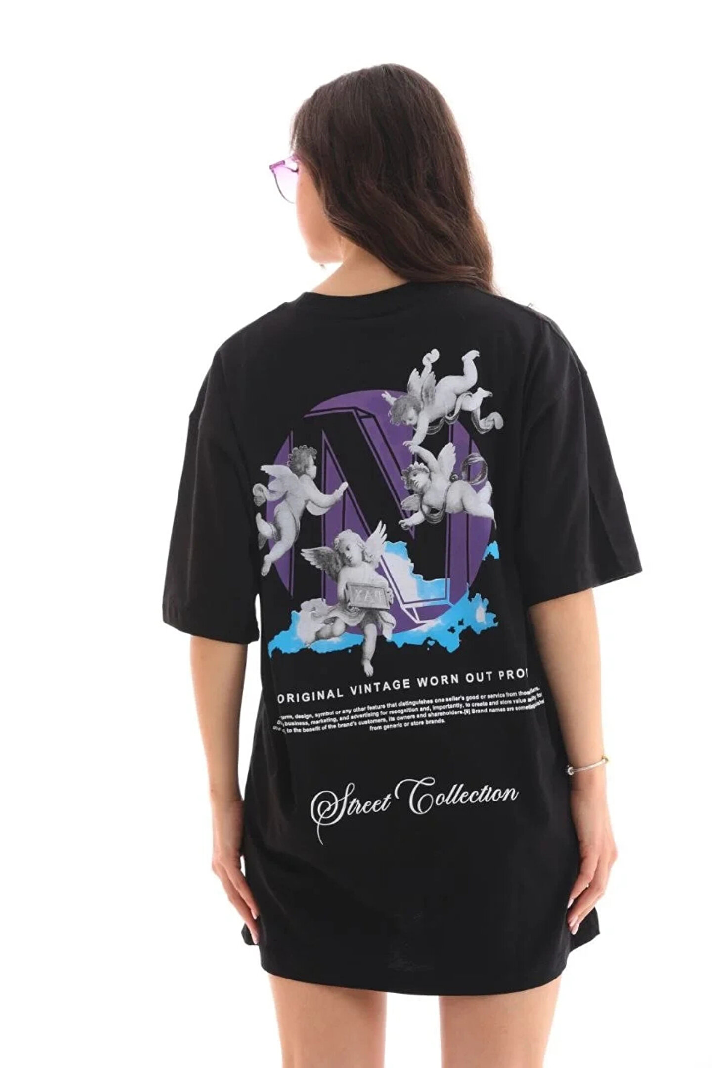Silerra Unisex Bisiklet Yaka Baskılı Oversize T-Shirt - Siyah