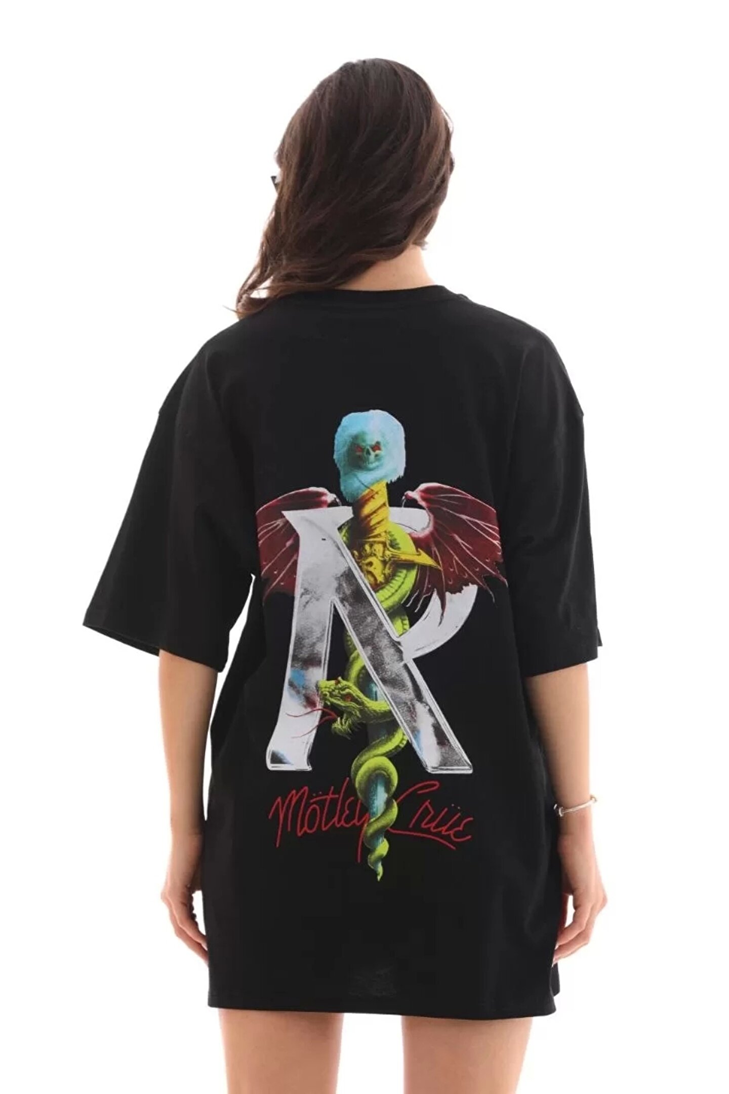 Silerra Unisex Bisiklet Yaka Baskılı Oversize T-Shirt - Siyah