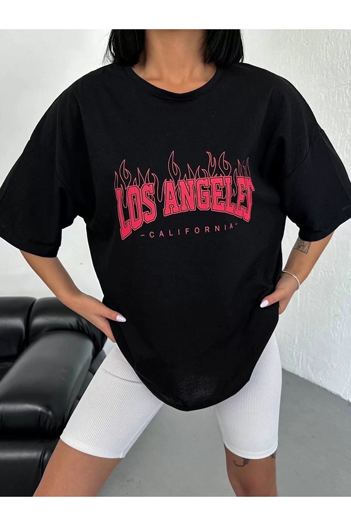 Silerra Unisex Bisiklet Yaka Baskılı Oversize T-Shirt - Siyah