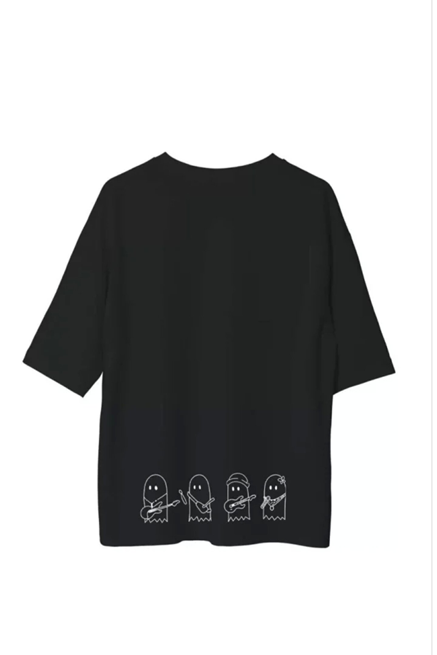Unisex Bisiklet Yaka Baskılı Oversize T-Shirt - Siyah